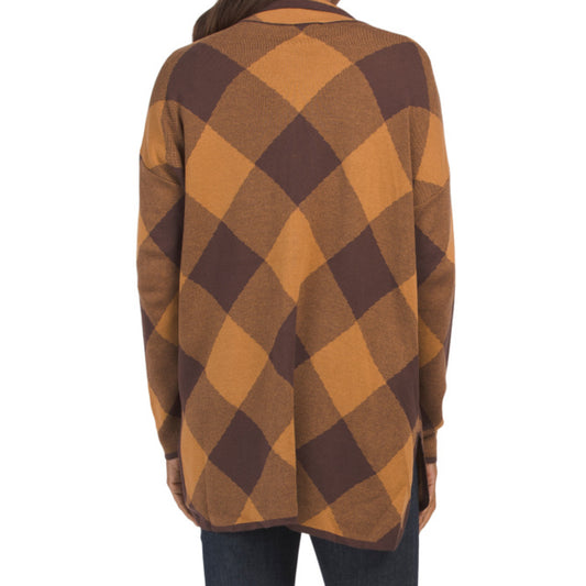 JONES NEW YORK Women's Buffalo Plaid Lightweight Knit Full Zip Poncho Jacket
