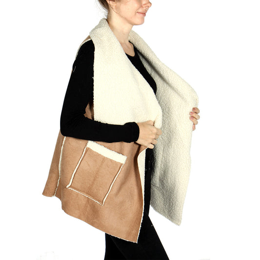 Ellie & Kate Women's Contrast Faux Sherpa / Suede Vest