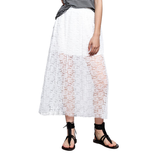 POL Women's Pleated Floral Lace Overlay Midi Skirt