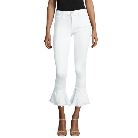 Frame Women's Le Skinny Flared Cut-Off Hem Mid Rise White Denim Jeans