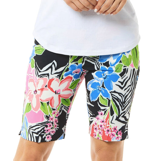 IBKUL Women's Amelia Tummy Control High Rise Floral Printed UPF 50+ Shorts