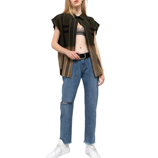 POL Distressed Raw Hem with Cactus Embroidery Denim Jeans