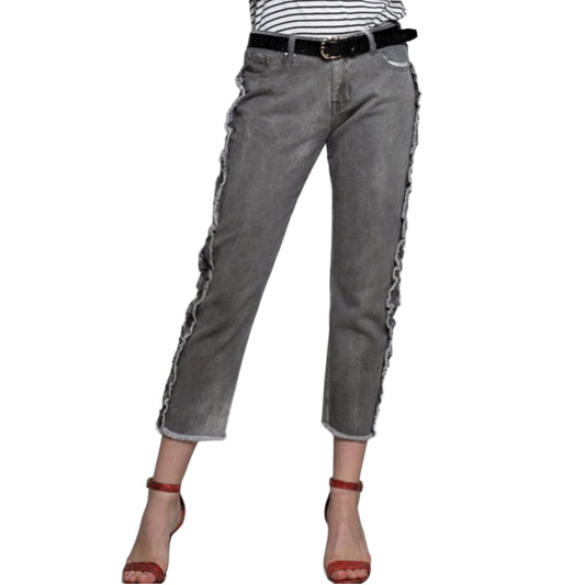 POL Ruffle side Mid Rise Cropped Gray Denim Jeans