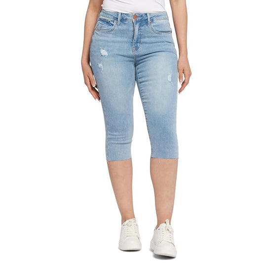 SEVEN7 Women's High Rise Skinny Fit Capri Breezy Cropped Distressed Jeans