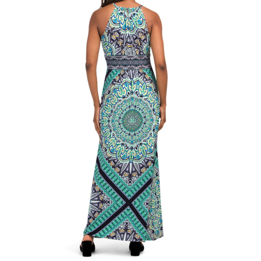 London Times Starburst Medallion Print Keyhole Halter Morris Maxi Dress