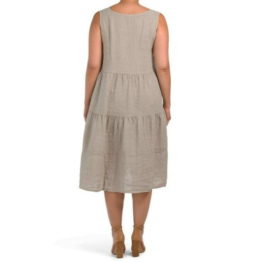 ROSEMARINE Plus Made In Italy Linen Sleeveless V-Neck Tiered Midi Dress