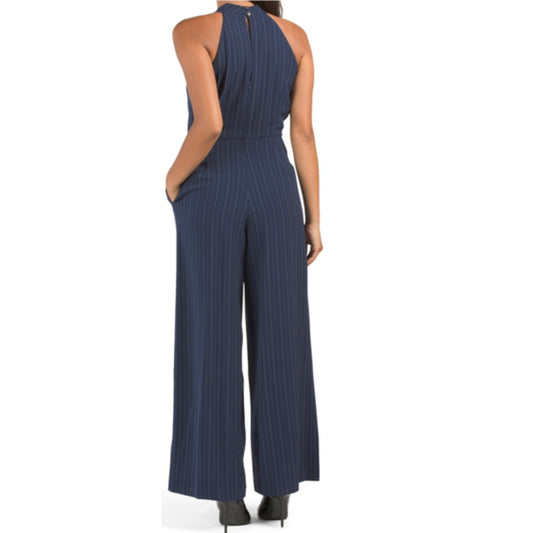 Julia Jordan Sleeveless Wide Leg Halter Neck Stripe Jumpsuit