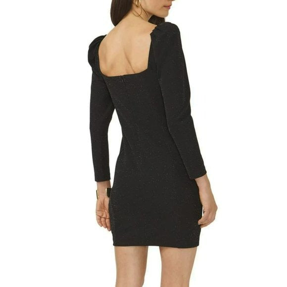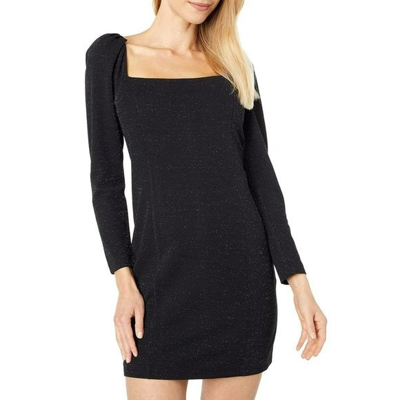 1.State Square Neck Princess Seam Metallic Shimmer Cocktail Mini Dress