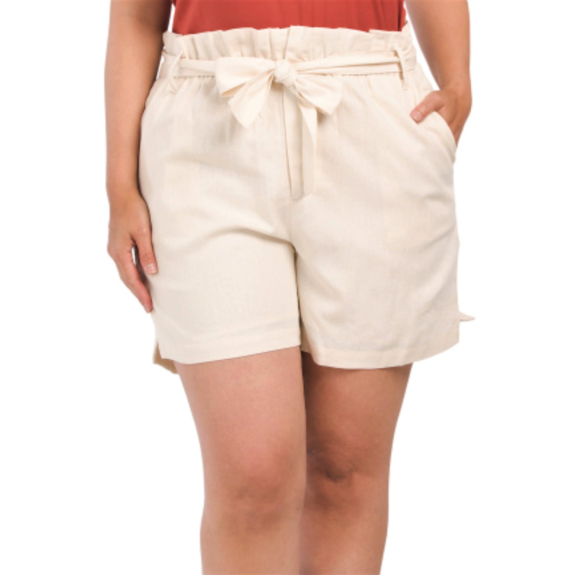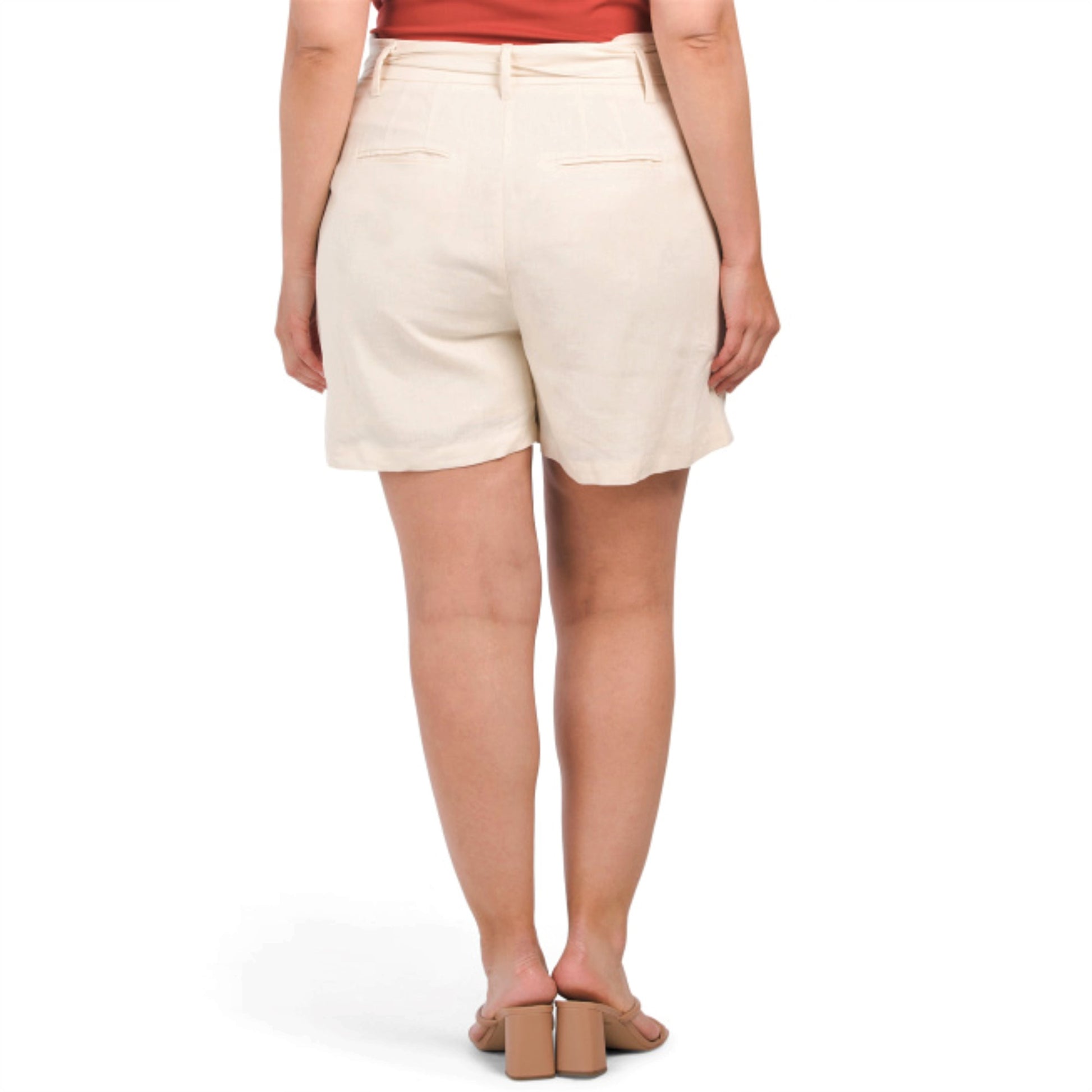 1.STATE Women's Plus Linen Blend High Rise Paperbag Waist Shorts