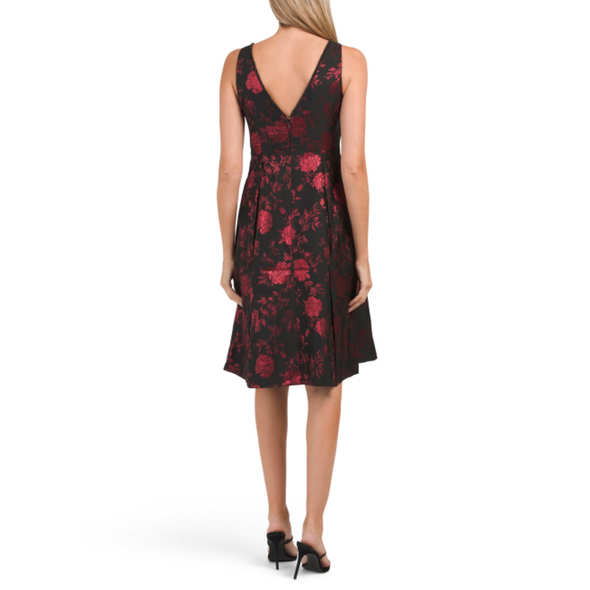 Adrianna Papell Women's Faux Pearl Trim Metallic Floral Print Jacquard Fit And Flare Mini Dress