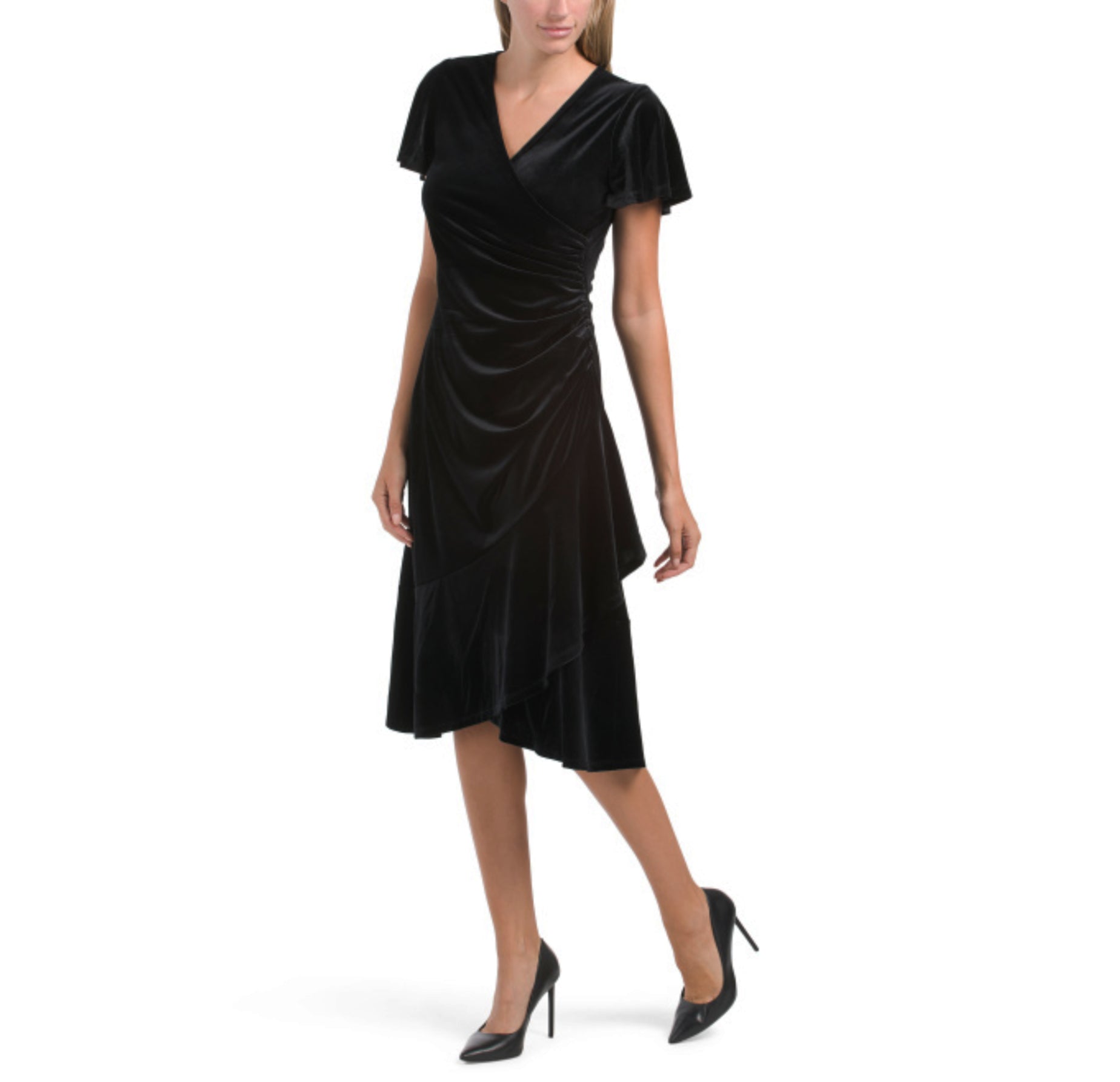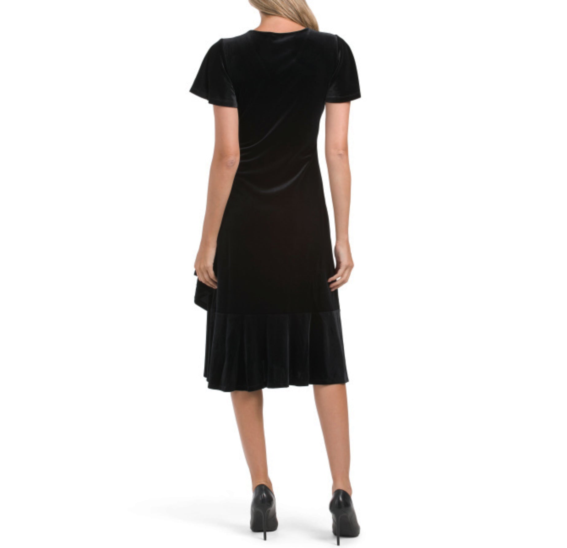 Anne Klein Women's Dahlia Flutter Sleeve Ruffle Skirt Wrap Style Velvet Midi Dress