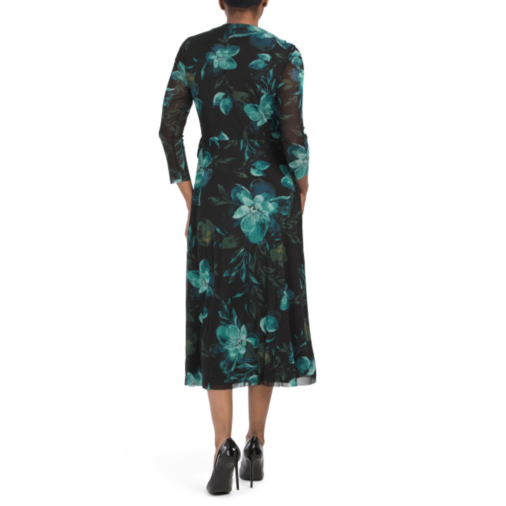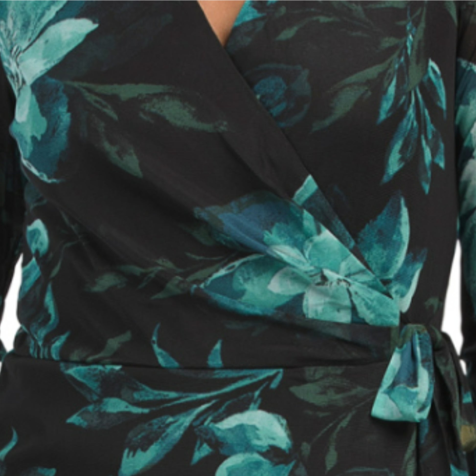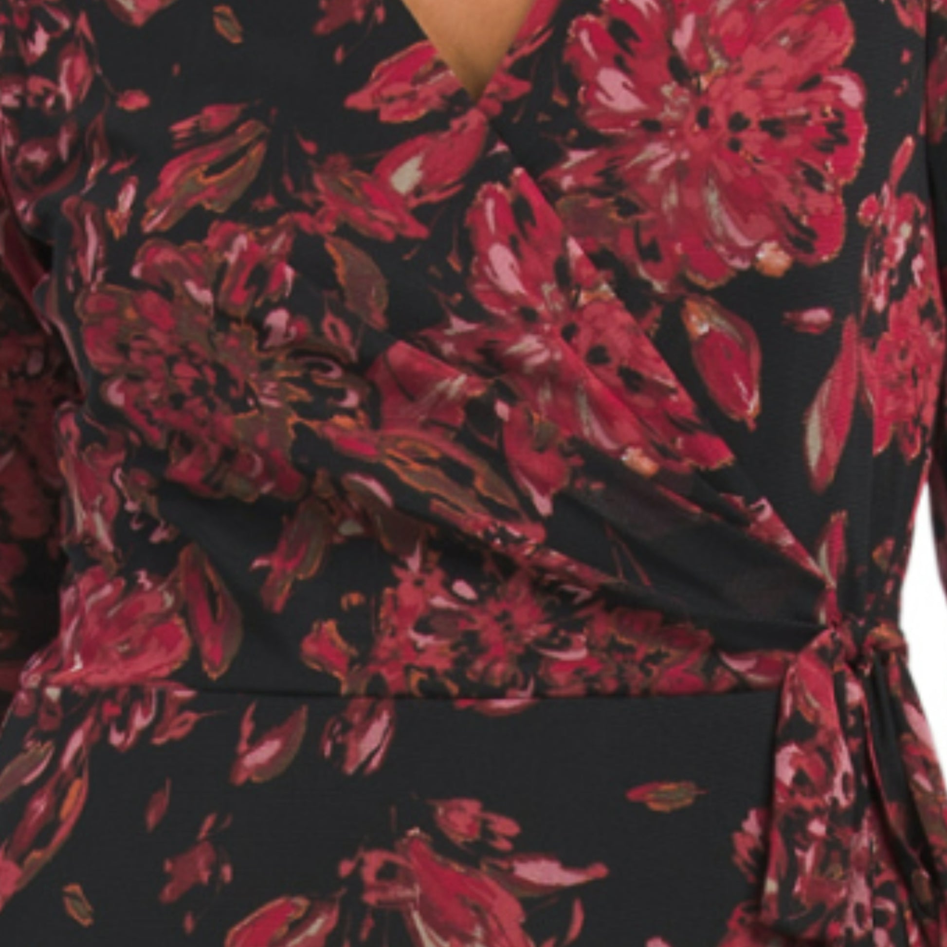 Anne Klein Women's Long Sleeve Floral Print Tie Waist Wrap Midi Dress