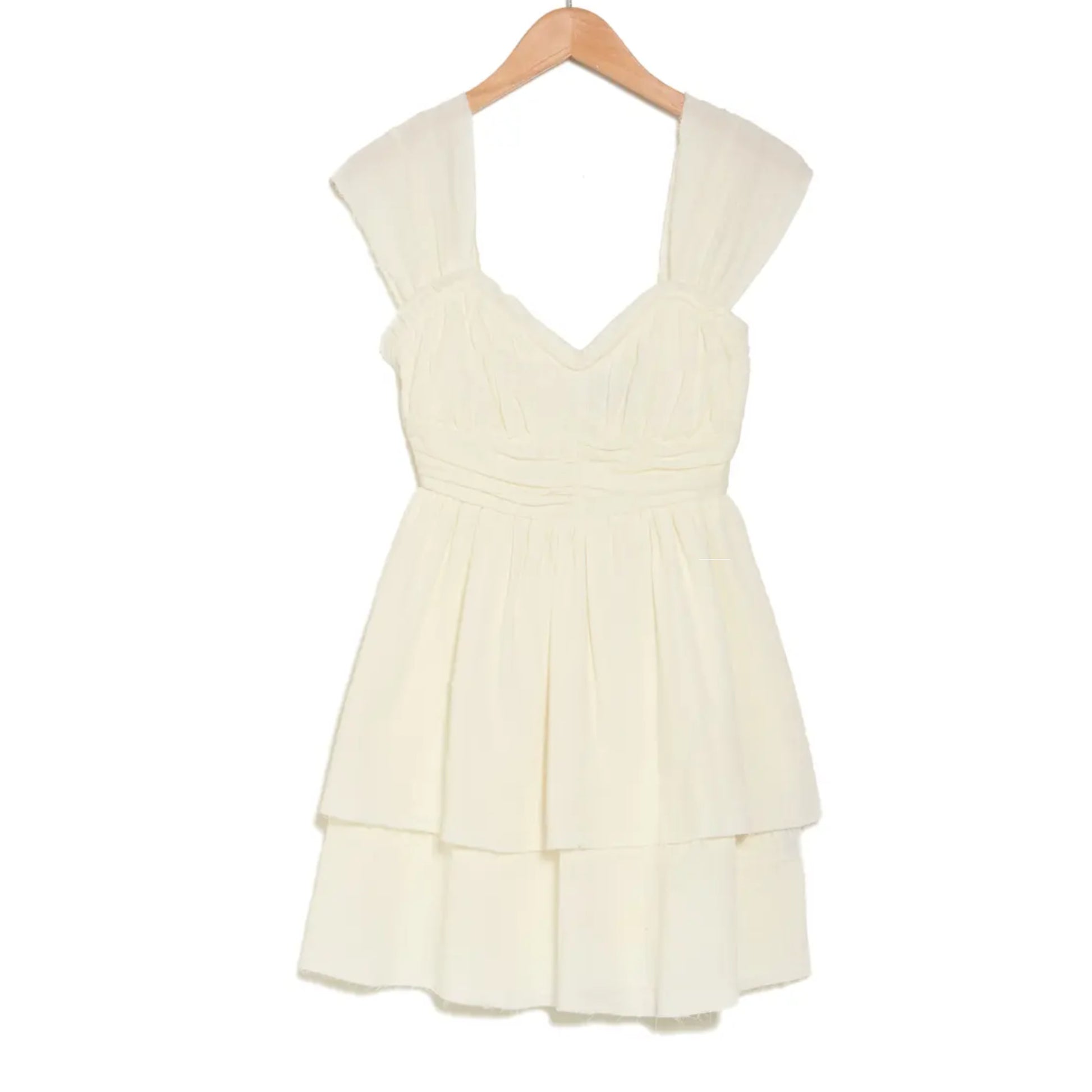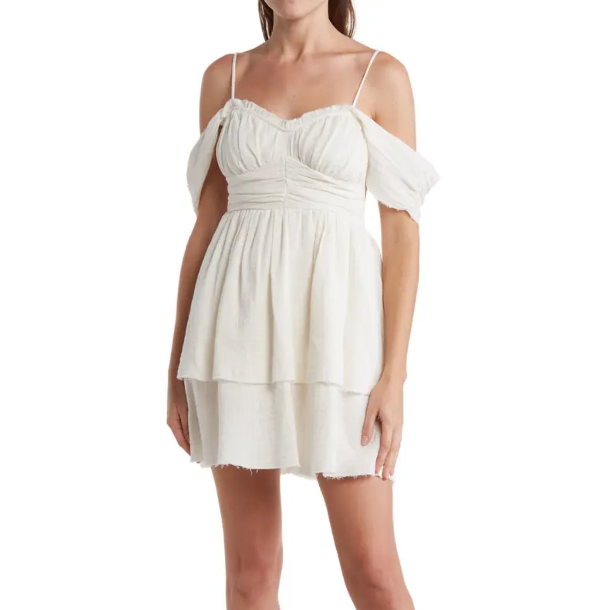 ASOS Women's Cold Shoulder Sweetheart Neck Crinkled Cotton Layered Mini Dress