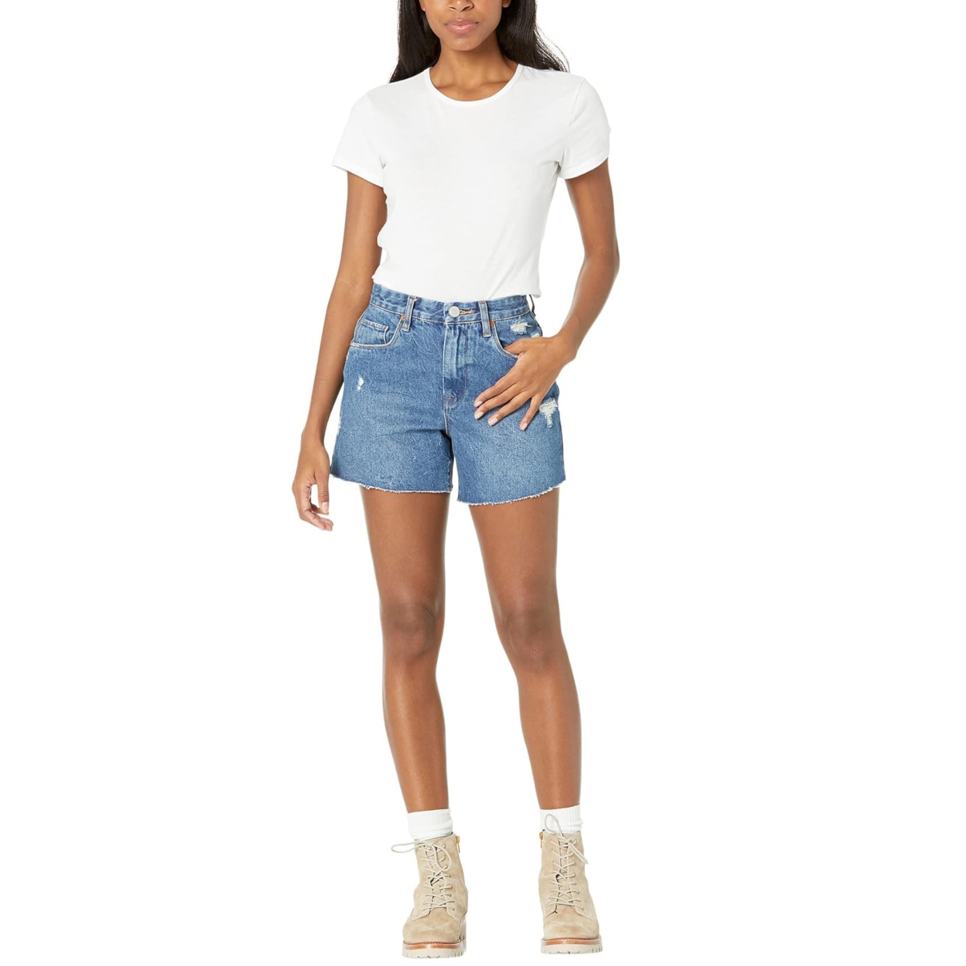 These BLANK NYC denim shorts feature raw hem, a high rise cut, and distressed details for a casually cool, stylish look. Crafted from lightweight denim fabric, these shorts offer an instantly stylish look.