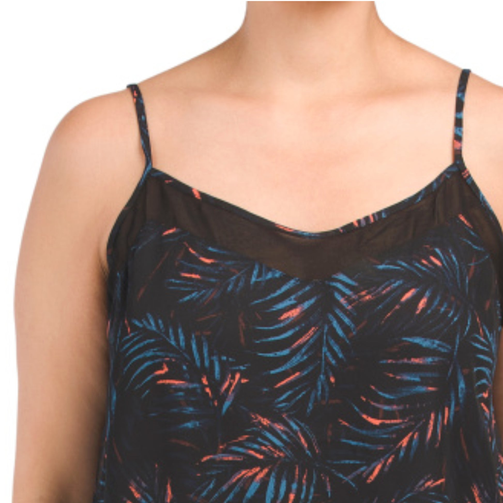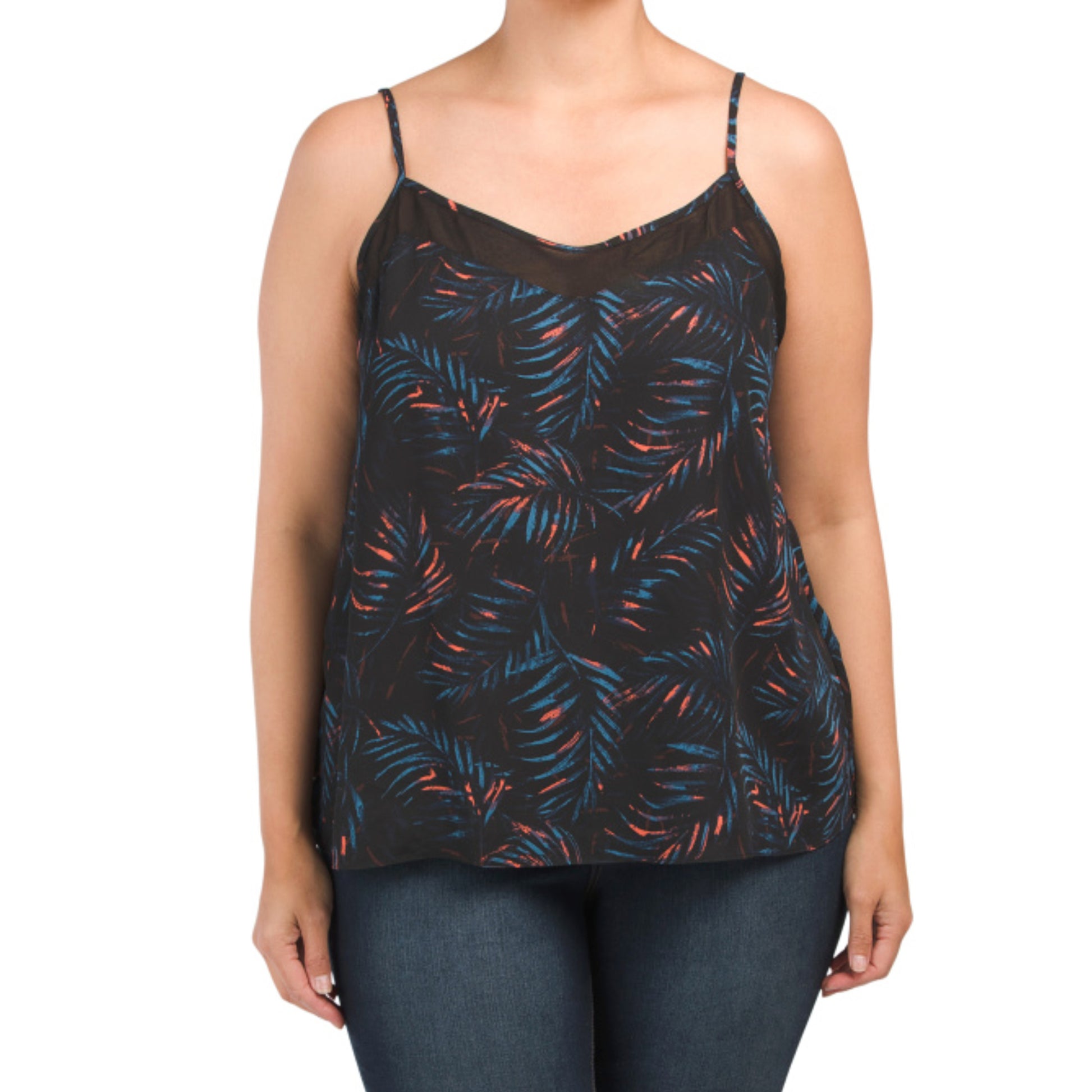 CARMEN MARC VALVO Women's Plus Tropical Print Adjustable Straps Cami Tank Top