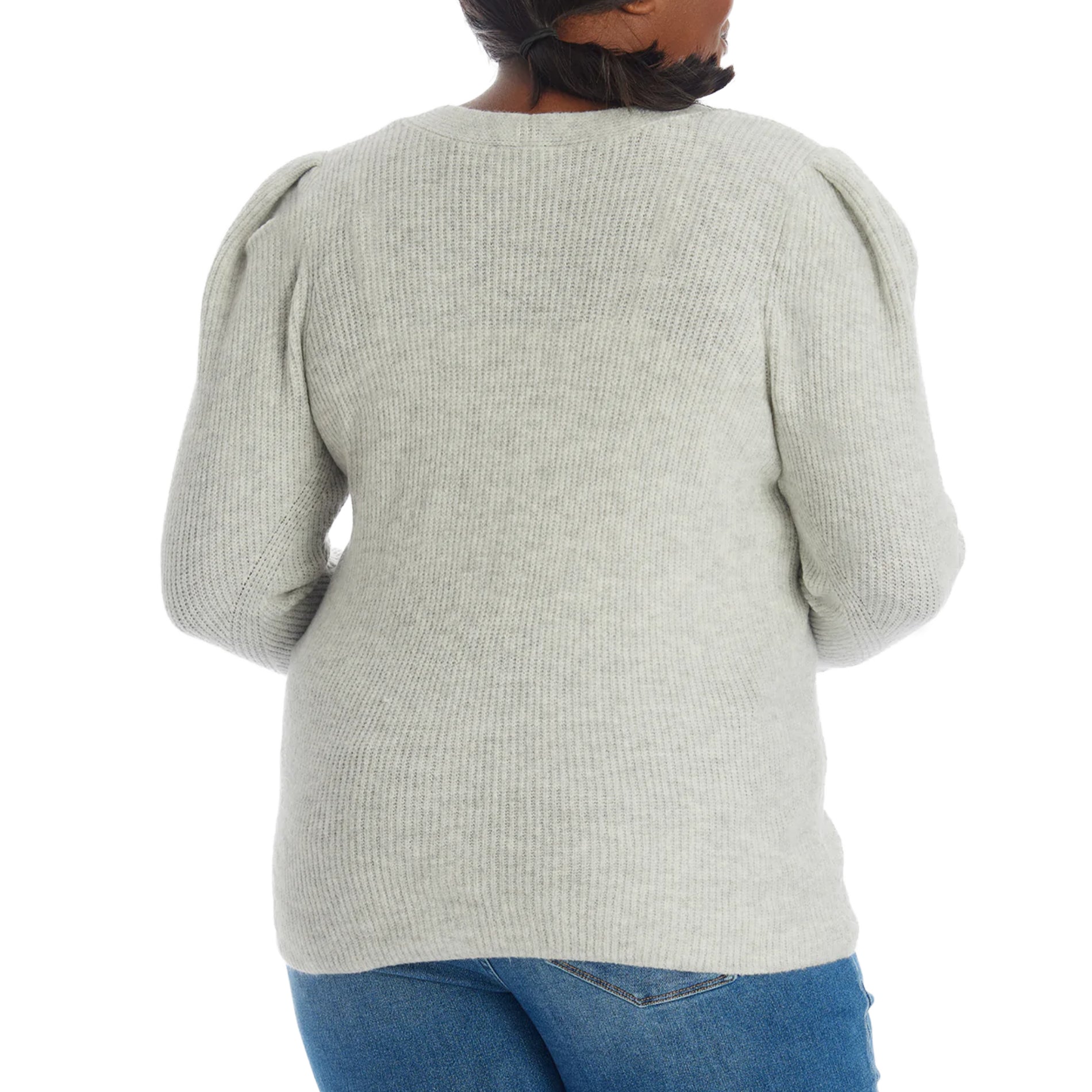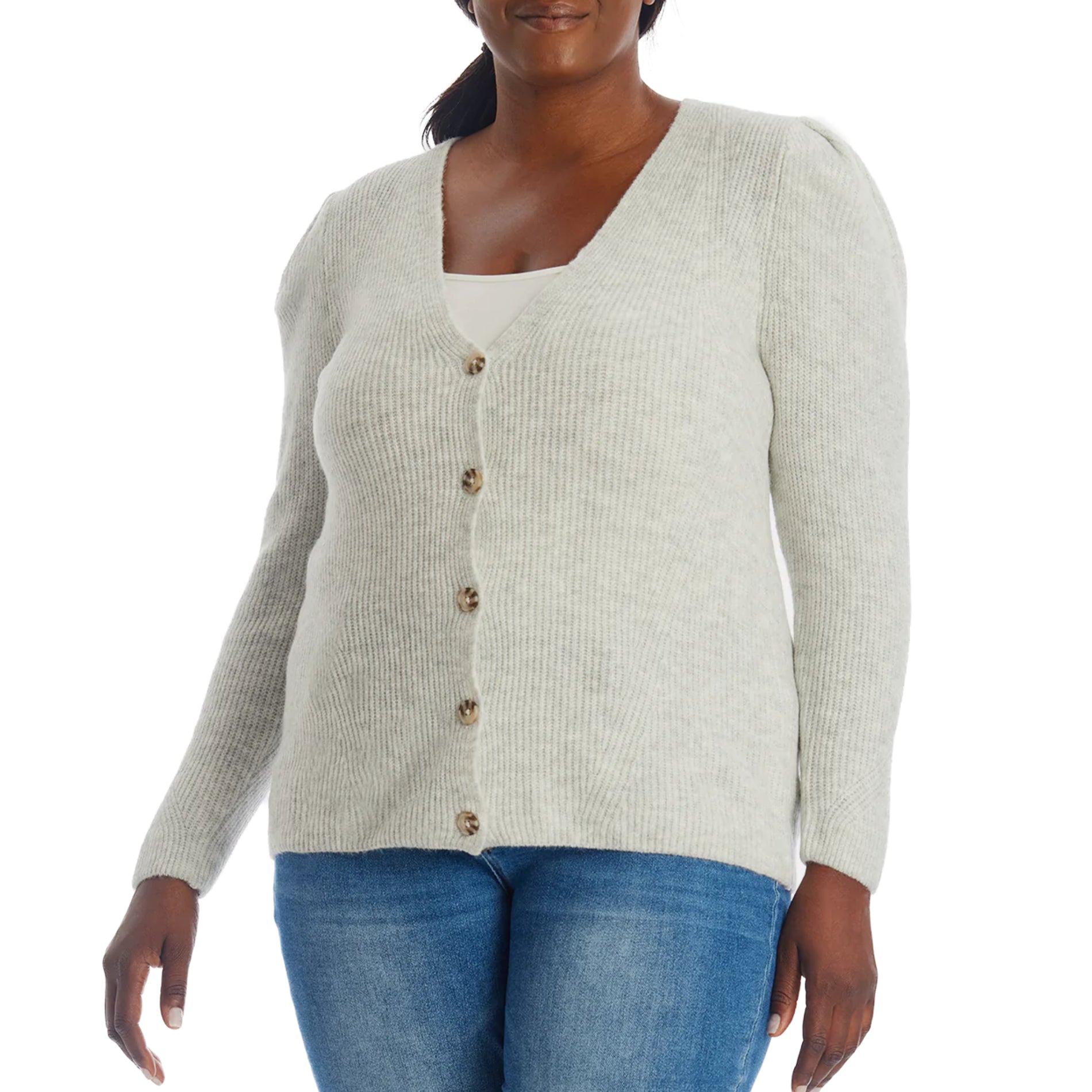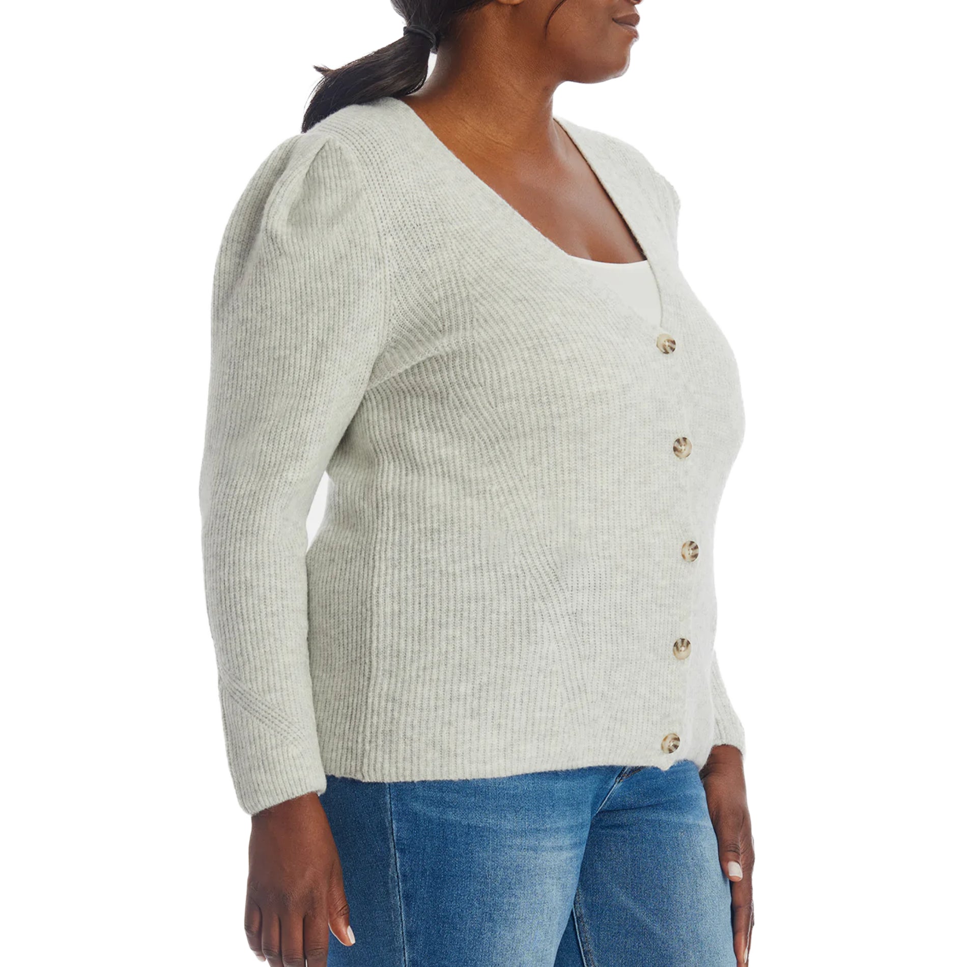 1.STATE Women's Plus Puff Long Sleeve Button Front Top Soft Knit Cardigan