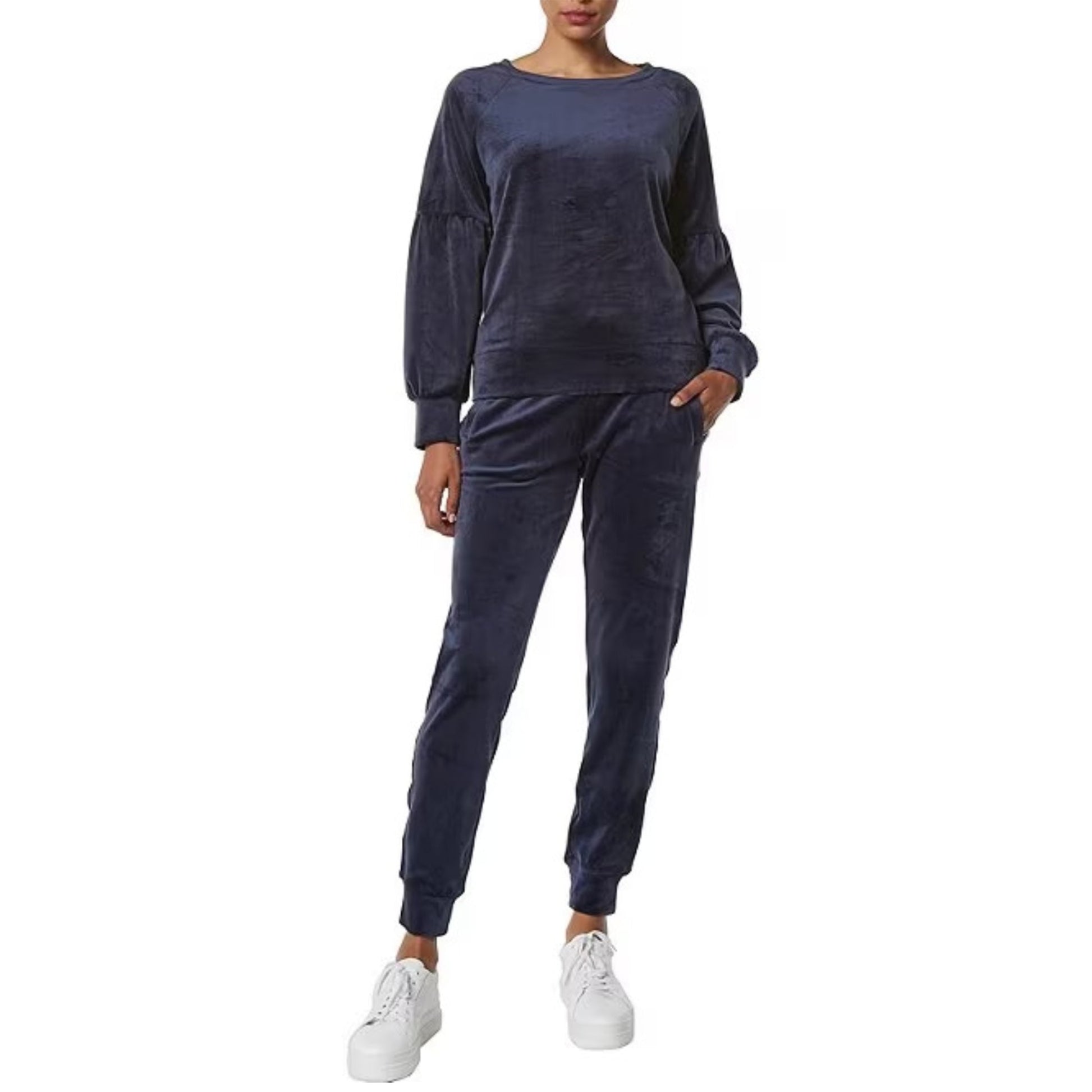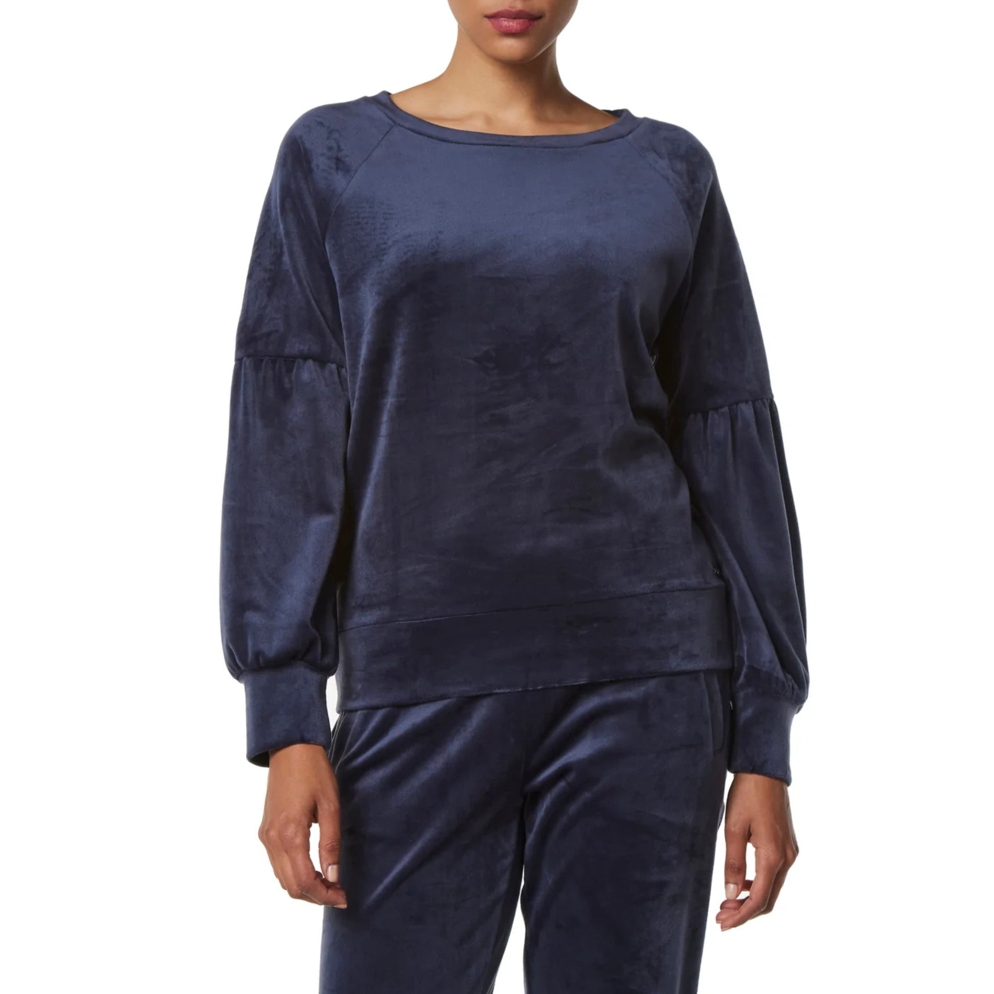 Andrew Marc Marc NY Performance Women's Velvet Crew Neck Puff Sleeve Dropped Shoulder Active Top