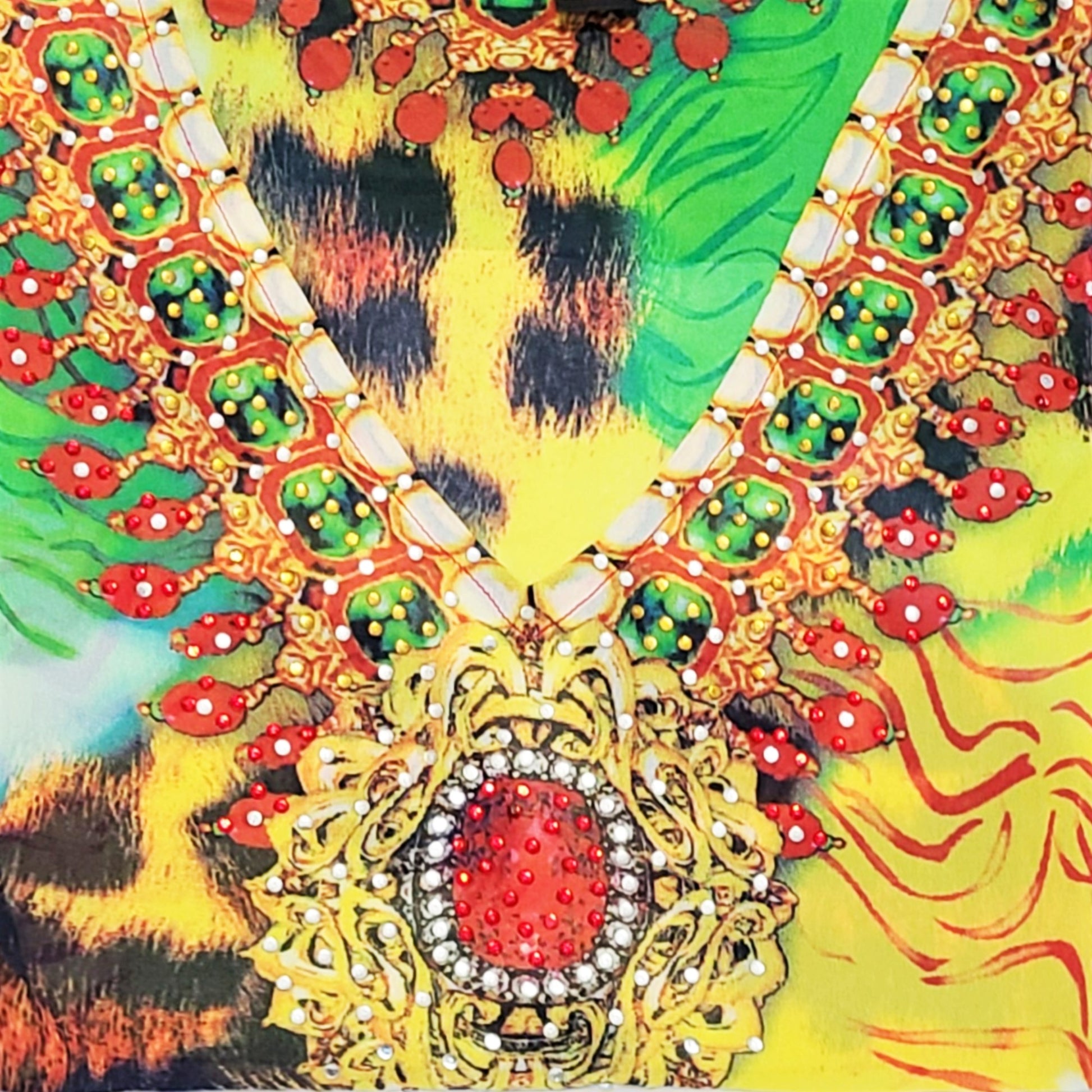 Achieve the styling with LA MODA Caftan Cover-up. Features an eye-catching blend of patterns. embellished with sparkling rhinestones to bring a touch of glamour to your look. The lightweight breezy fabric offers comfortable coverage and keeps you cool in the summer heat.