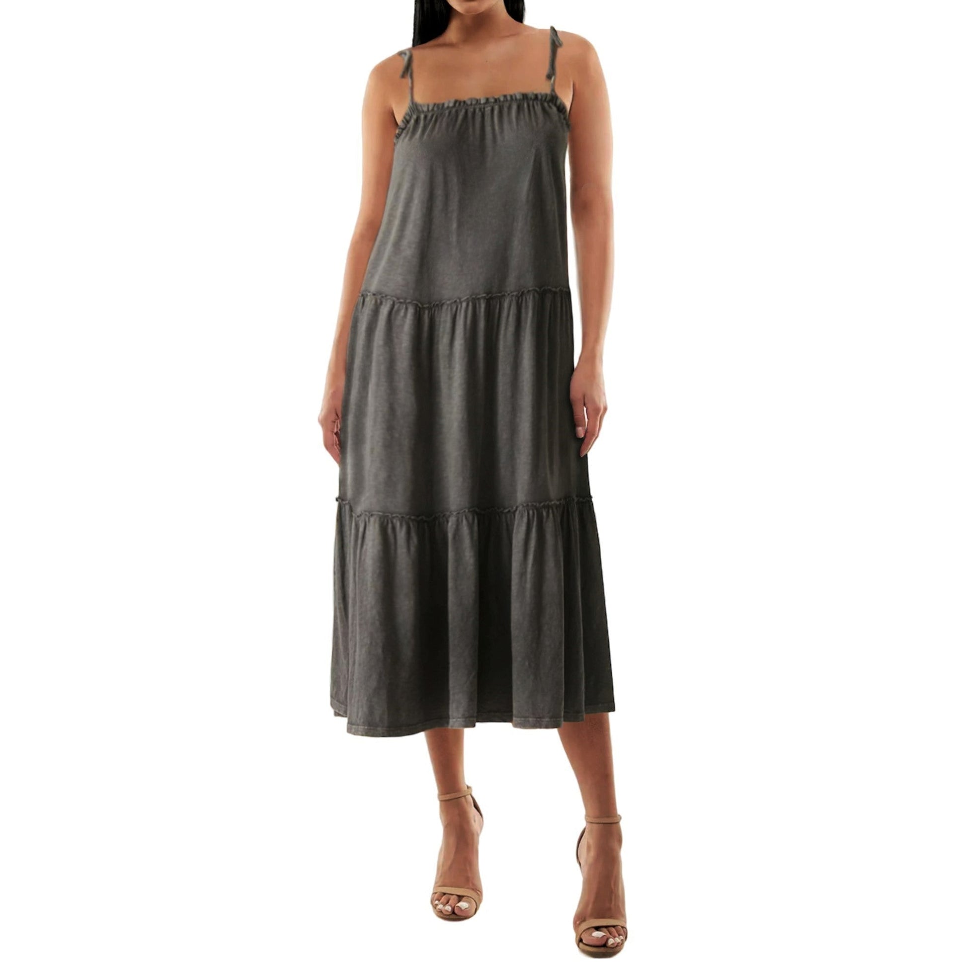 Lucky Brand cami maxi dress designed with timeless tiered silhouette that gently moves with you. Featuring baby ruffle details and flirty shoulder ties. Its breezy design ensures you'll stay cool and fashionable in any situation.