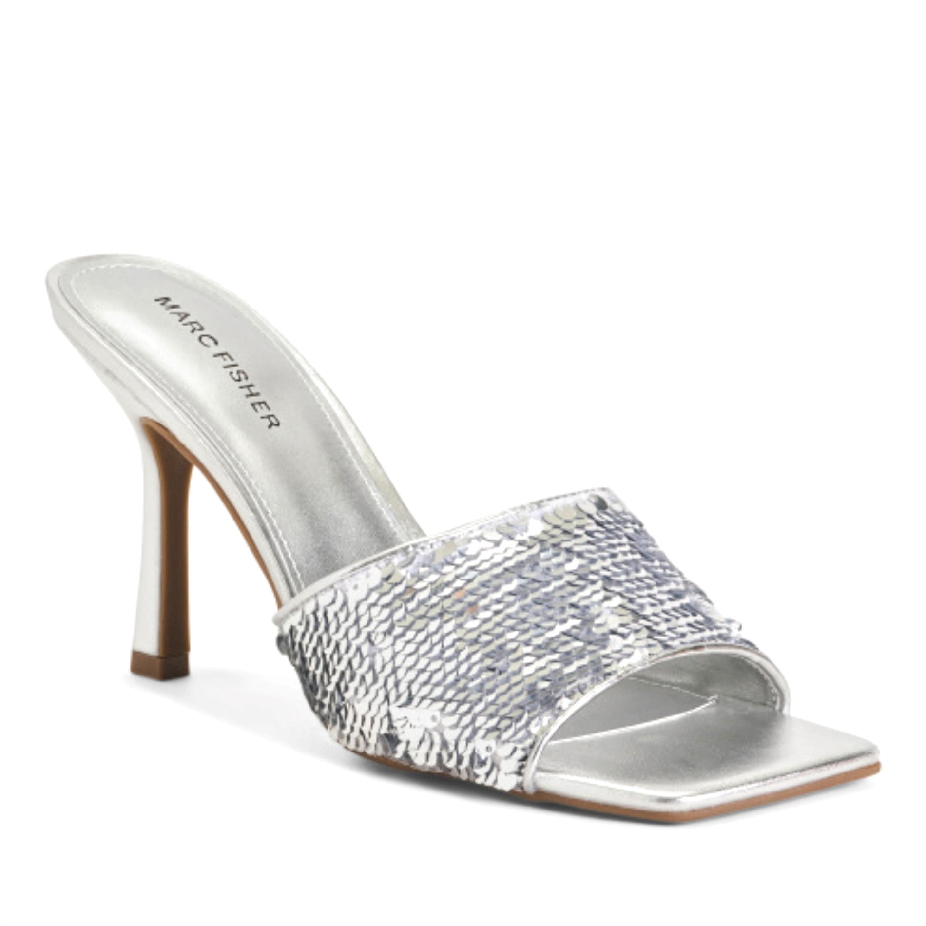 Marc Fisher Women's Danria Sequin Open Toe Slip-on Stiletto Heel Party Sandals
