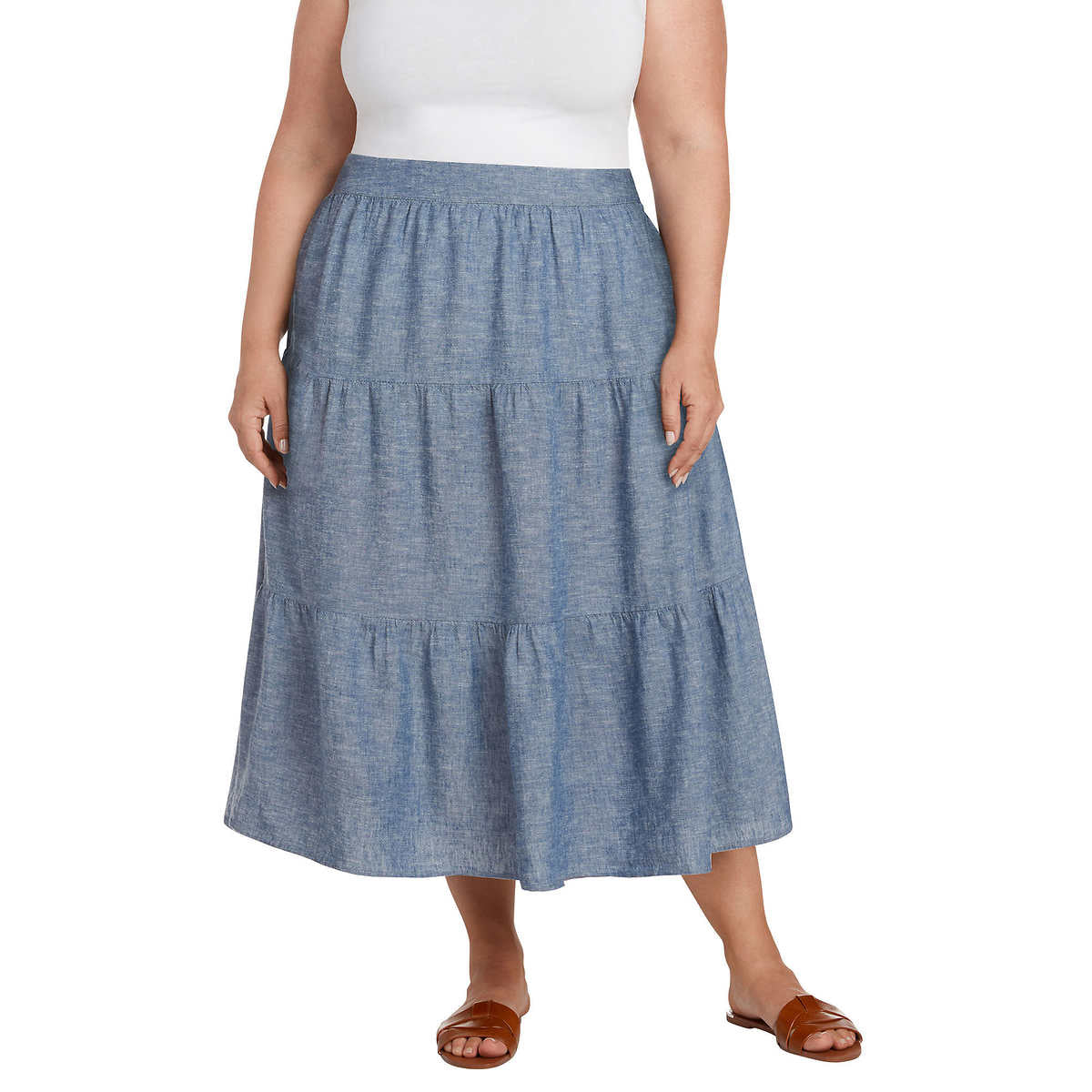 Matty M's Women's Linen Blend Tiered Midi Skirt is designed with side slit pockets and tiered frame for a modern flair. Its linen blend material is lightweight, breathable, and comfortable for all day wear. Perfect for the summer months, this skirt offers timeless style and easy versatility.