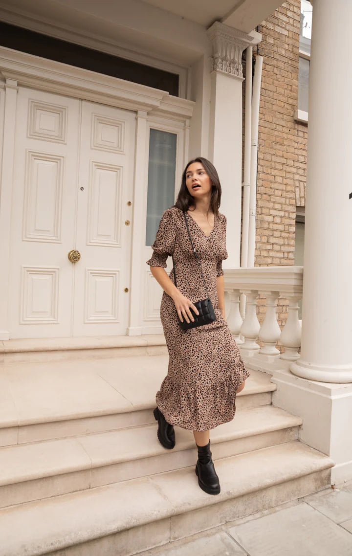 Make a statement in this RAE Tiered Mini Dress. Crafted from a lightweight fabric, this dress features a bold leopard print with soft volume sleeves and empire ruffle detail. Perfect for a day or night out, this dress elevates any look. Great with sandals and sunnies or paired with chunky boots and a leather jacket for those chillier days.