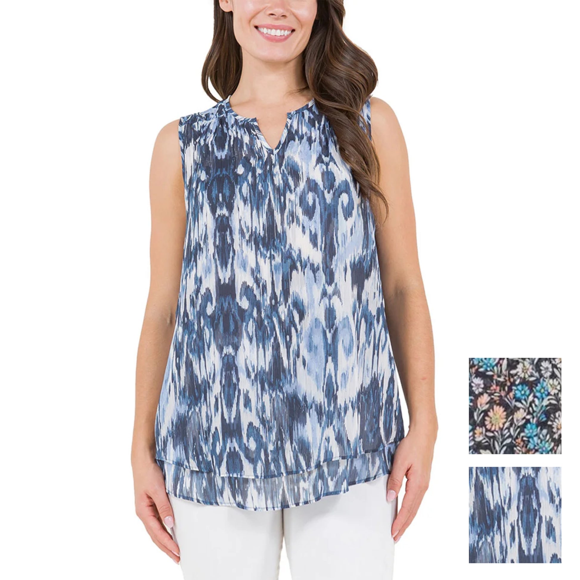 Elevate your style game with the Cristina B Tunic Blouse. Its double-layered design adds depth and sophistication to your look, while the sleeveless cut keeps you cool and comfortable. Perfect for any occasion, this tunic blouse effortlessly combines fashion and function.