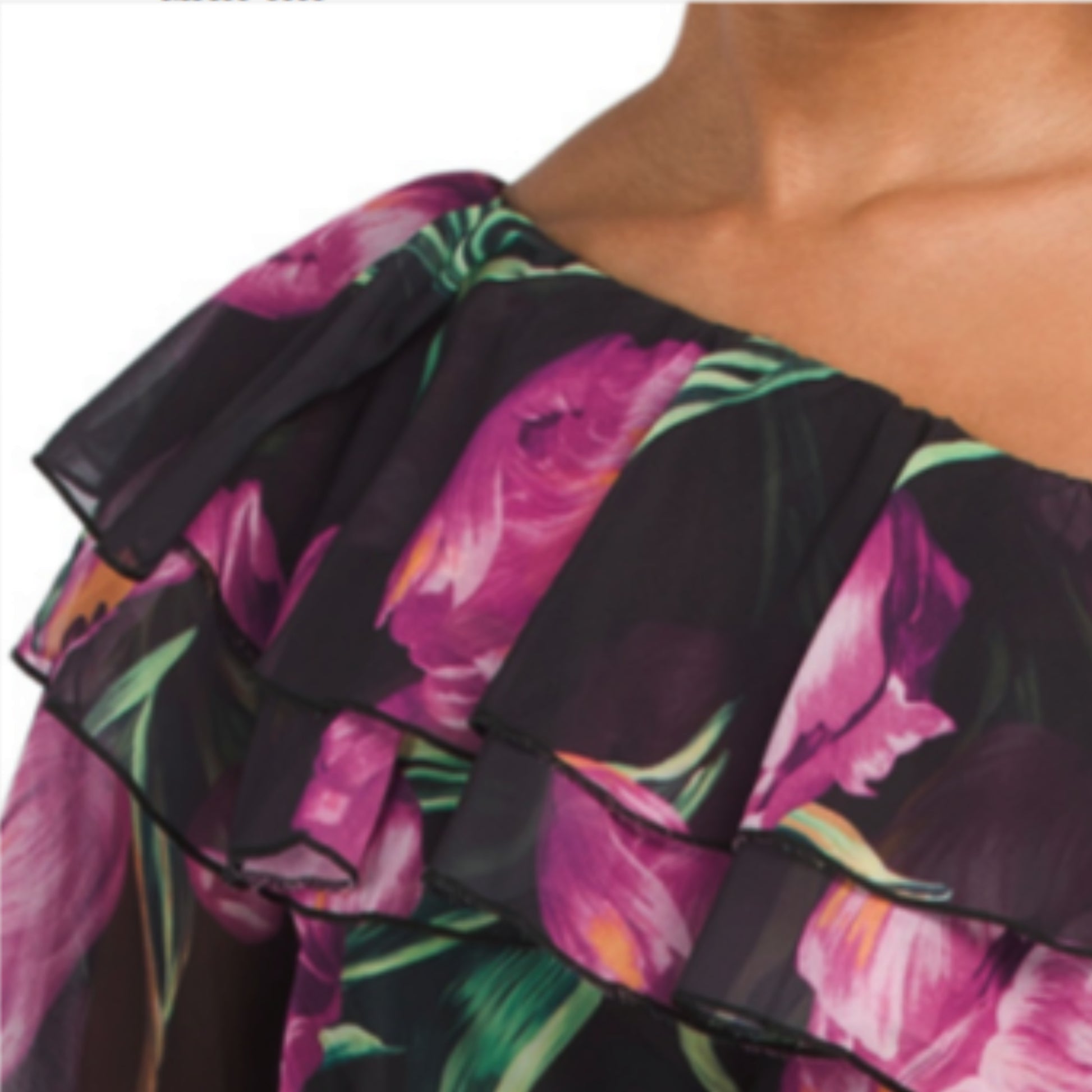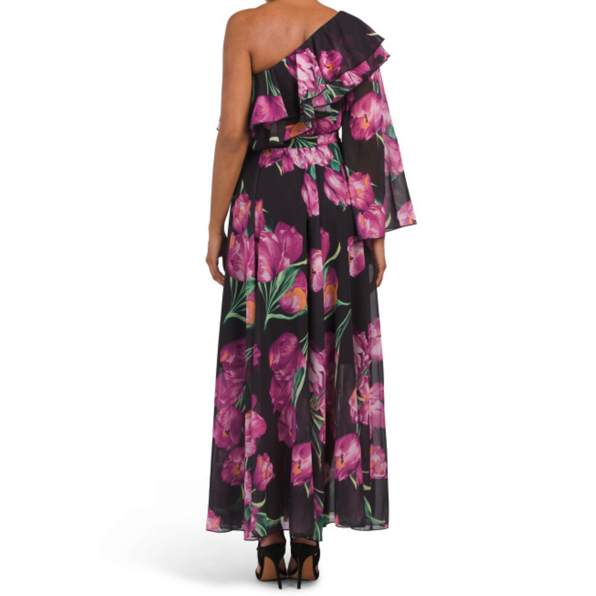 DALIA MACPHEE Women's One Shoulder Bold Floral Asymmetrical Maxi Dress