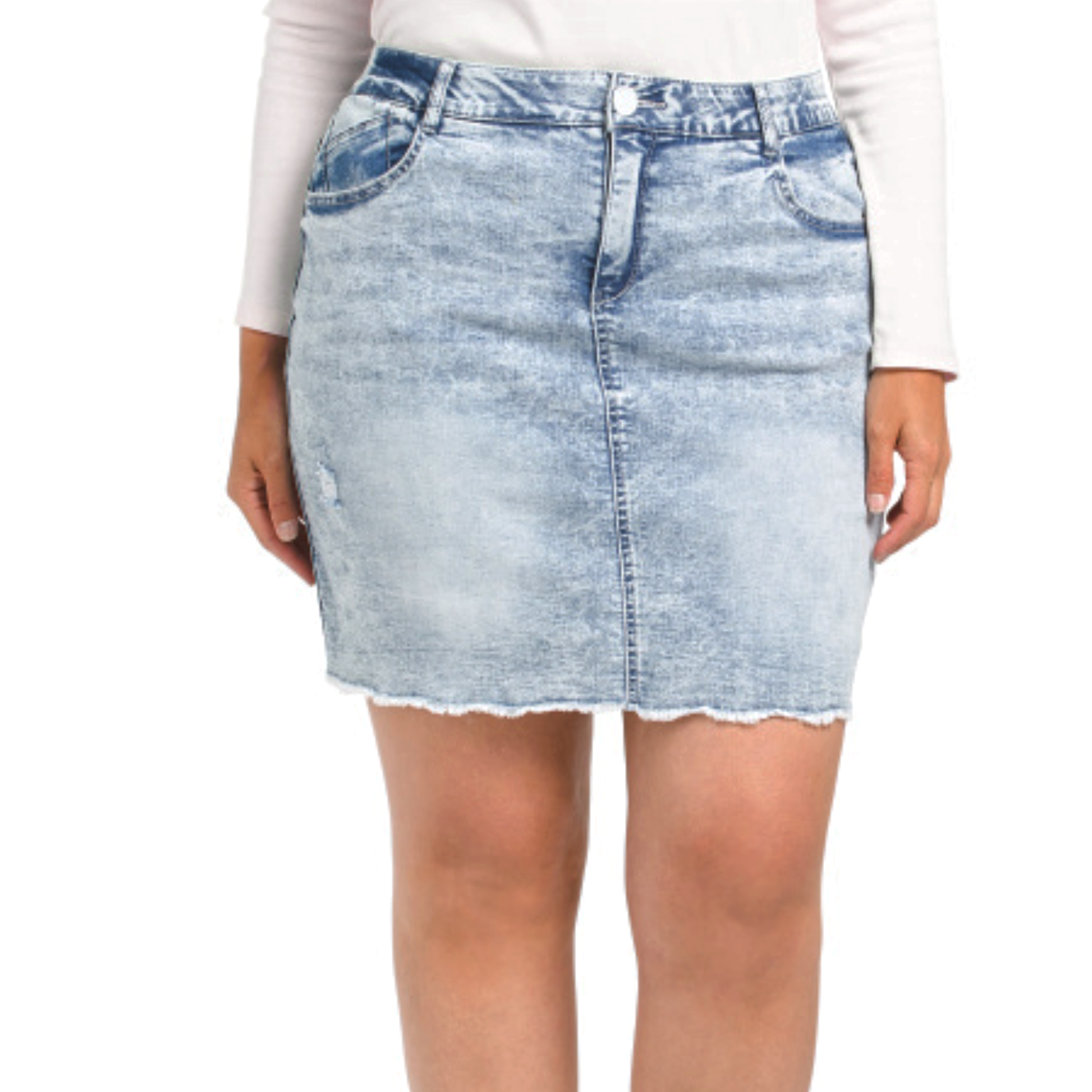 Democracy Women's Plus Ab Solution Frayed Hem Destructed Denim Mini Skirt