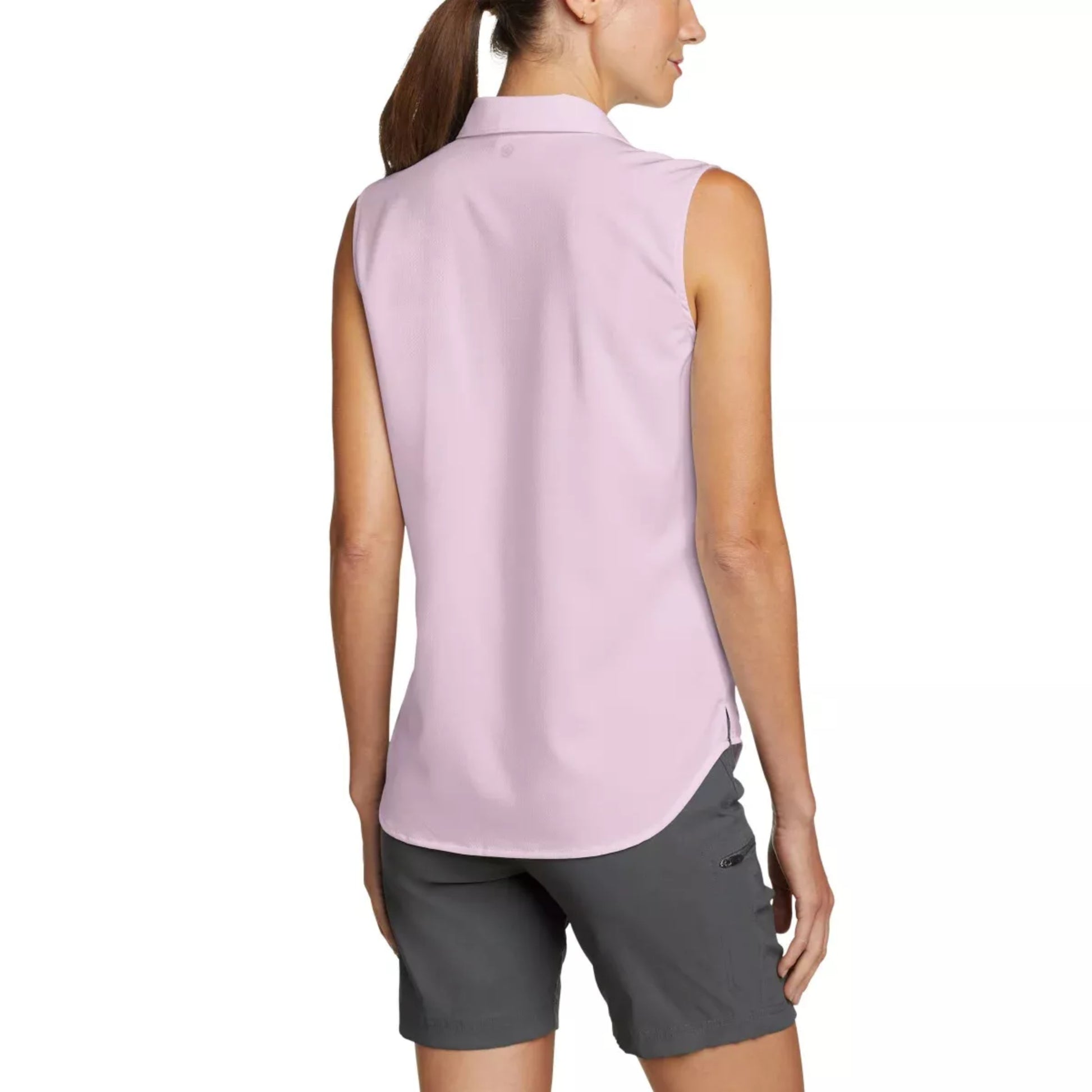 Stay cool and comfortable with this Eddie Bauer sleeveless button-down shirt. Designed with moisture-wicking technology to keep you dry during warm days or active moments. The stretchy fabric moves with you, providing all-day comfort whether you're working or enjoying casual outings. Perfect for layering or wearing on its own.