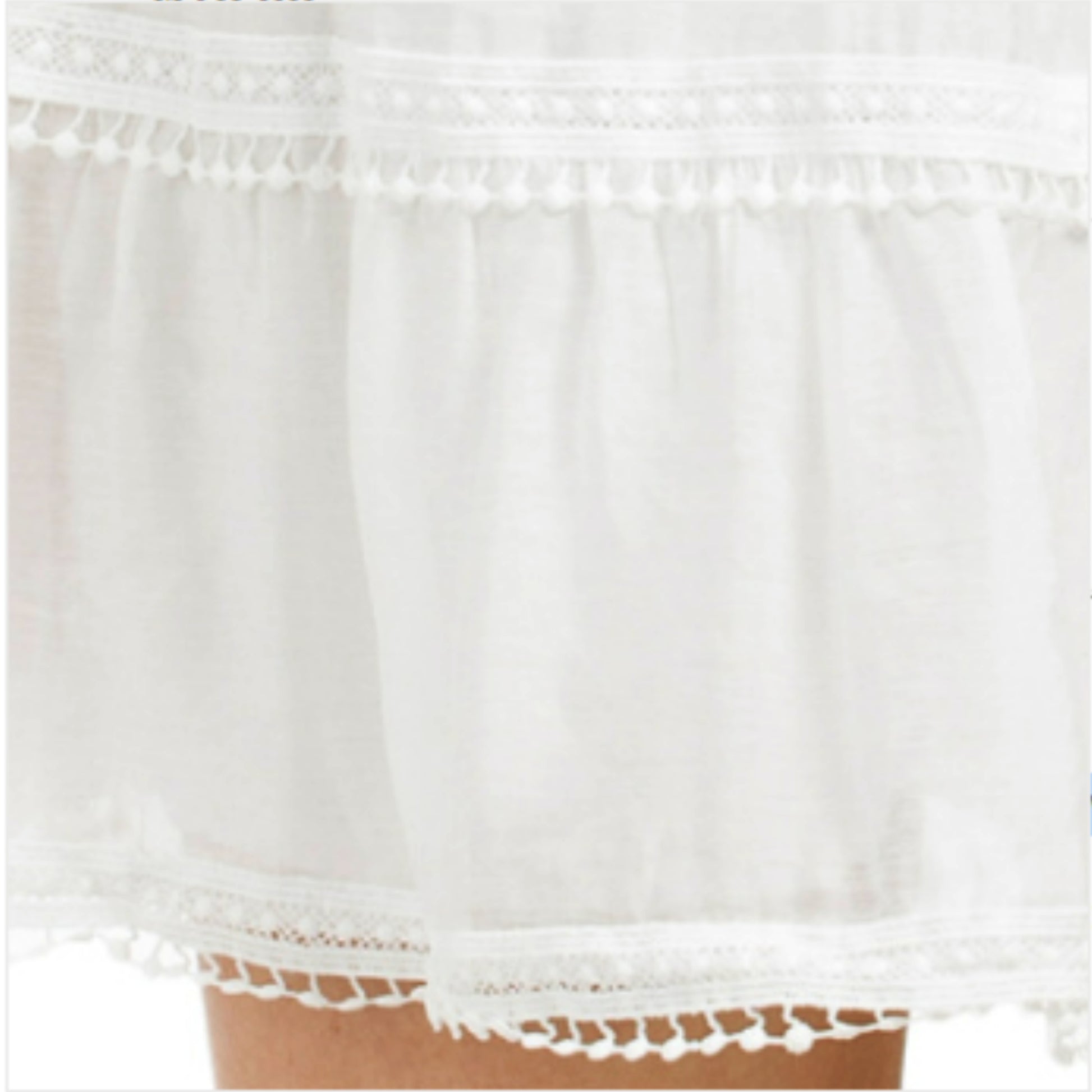 ELAN Women's Crochet Trim Smocked Top Tiered Cover-up Mini Dress