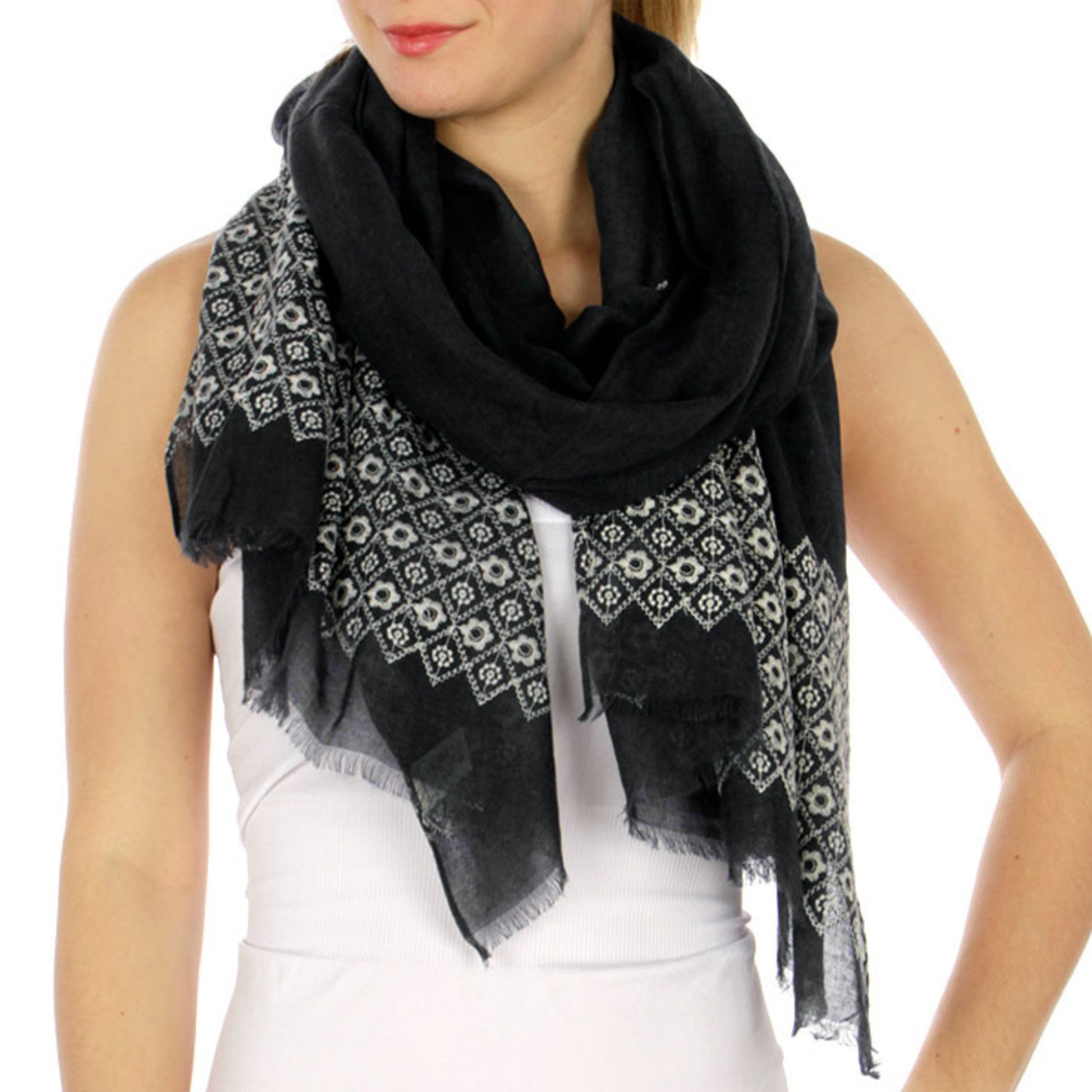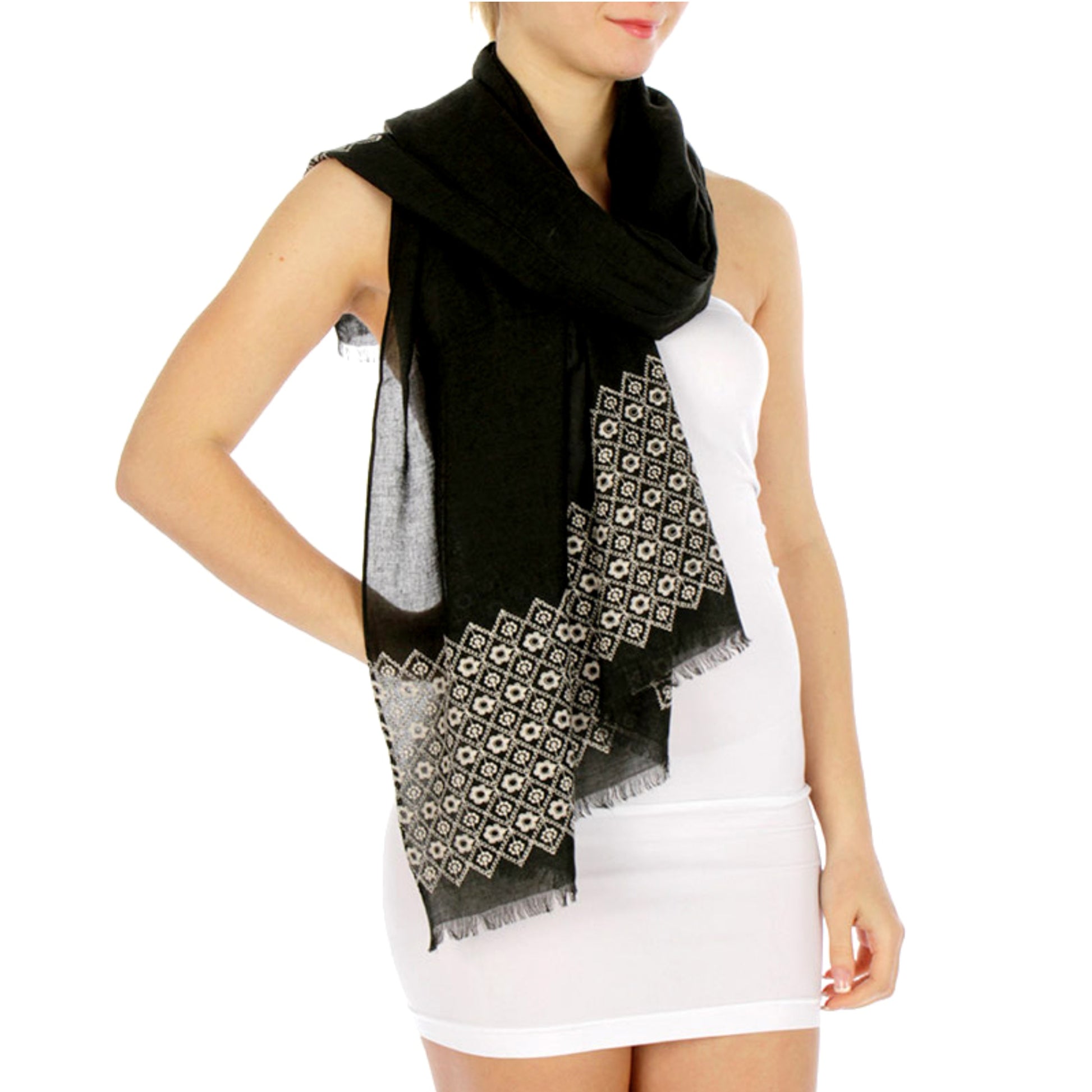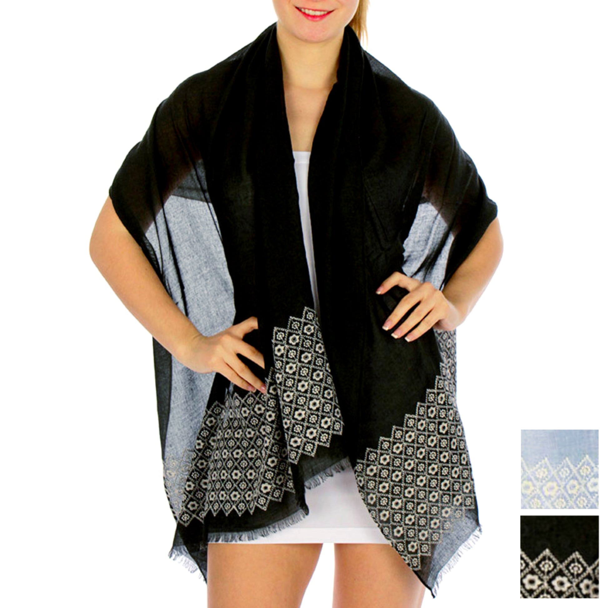 Fashion Women's Lightweight Semi Sheer Floral Embroidered Scarf Shawl Cover-Up