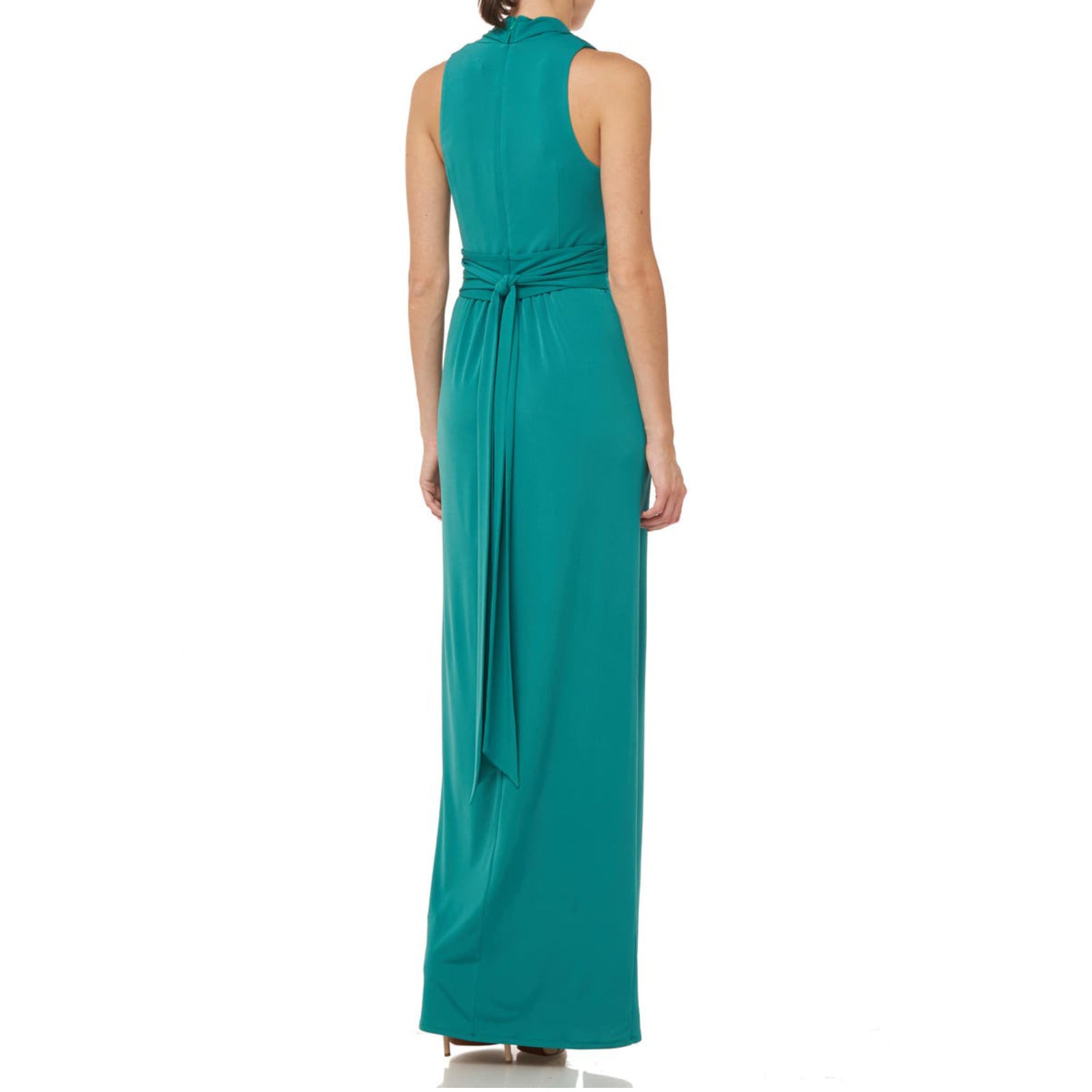 HALSTON HERITAGE Women's Draped Cowl Neck Front Slit Maxi Dress Gown