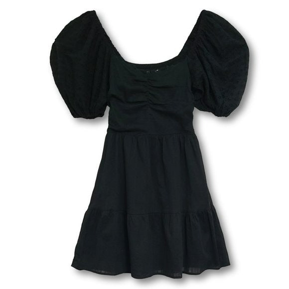 The Cella Dress is made from Embroidered Eyelet with a tiered A-line silhouette and puff sleeves. Versatile and airy, this dress can be worn on or off the shoulder. Pair this dress with heels for a dressed up look.