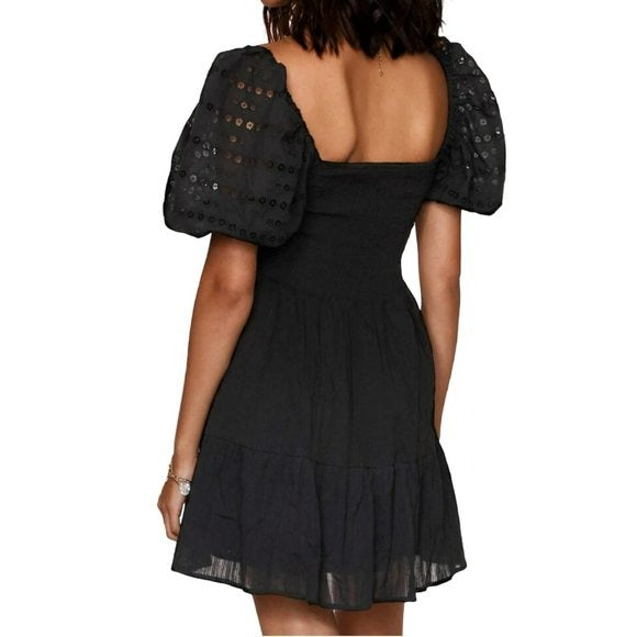 HEARTLOOM Cella Embroidered Eyelet Puff Sleeves Smocked Tiered Mini Dress