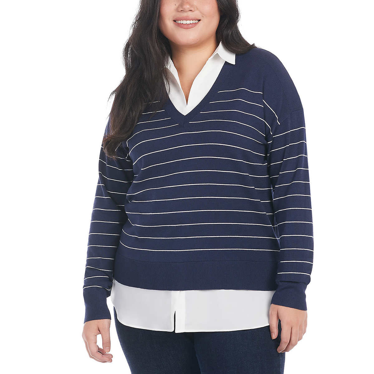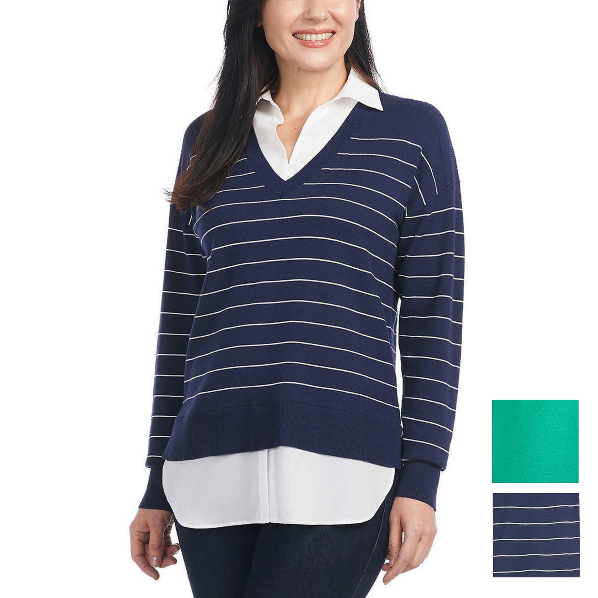 Hilary Radley Women's Collared V-Neck Soft 2-fer Sweater