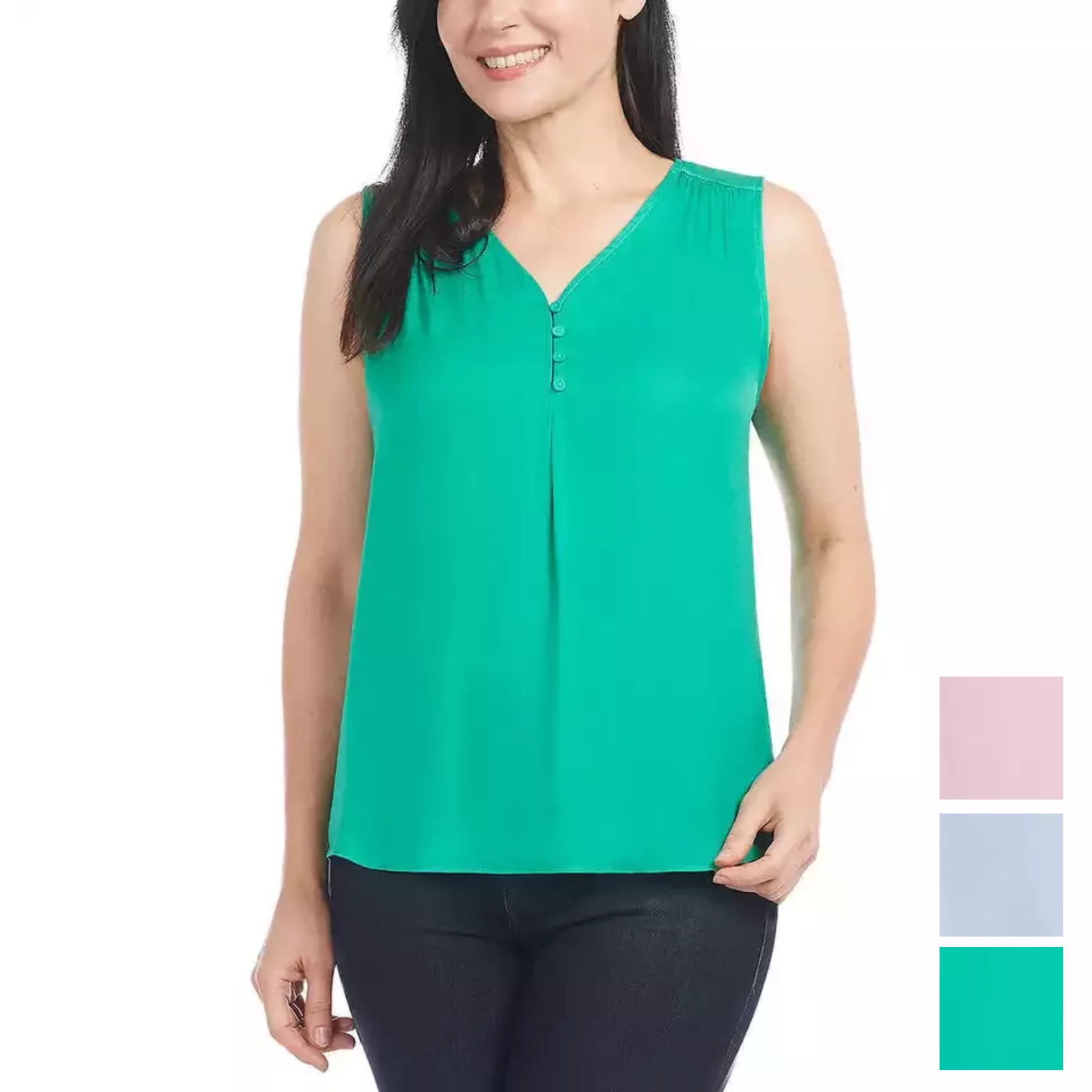 Hilary Radley Women's Sleeveless V-Neck Lightweight Blouse Top