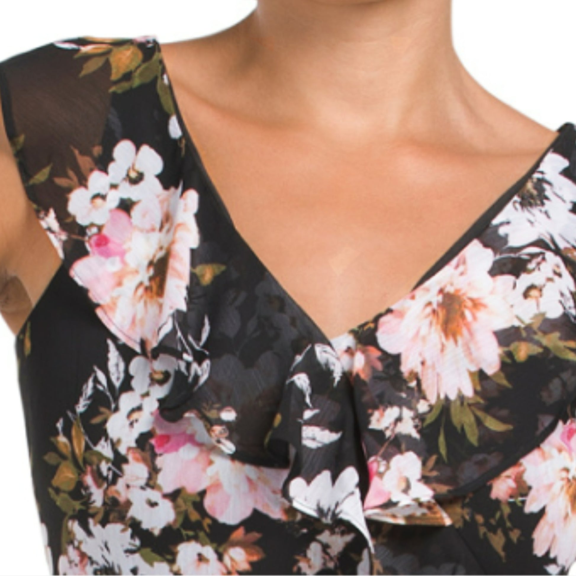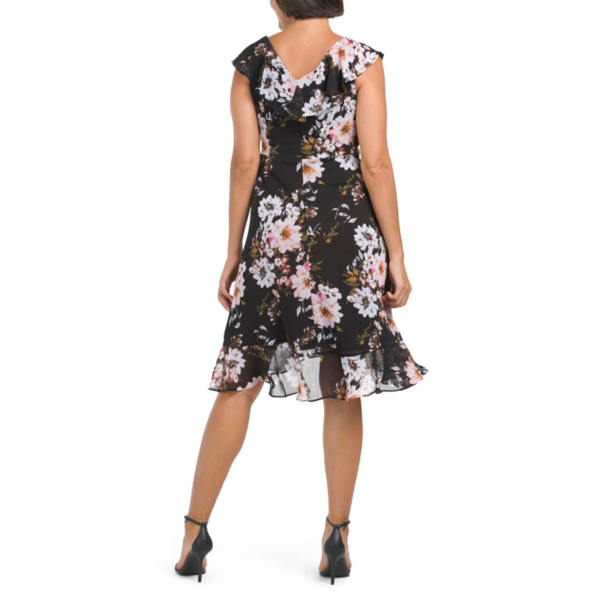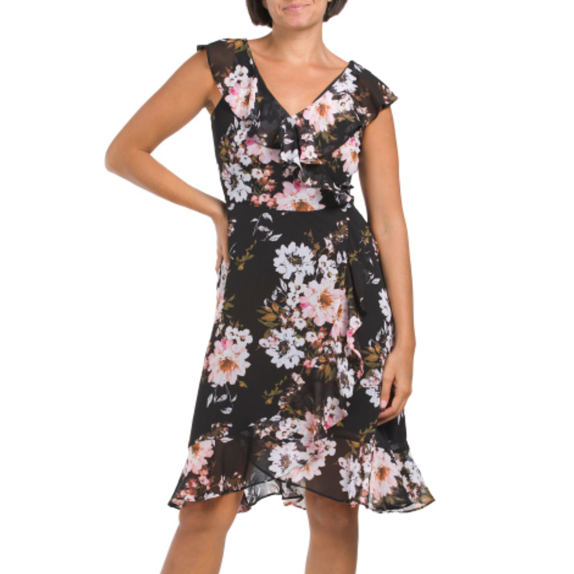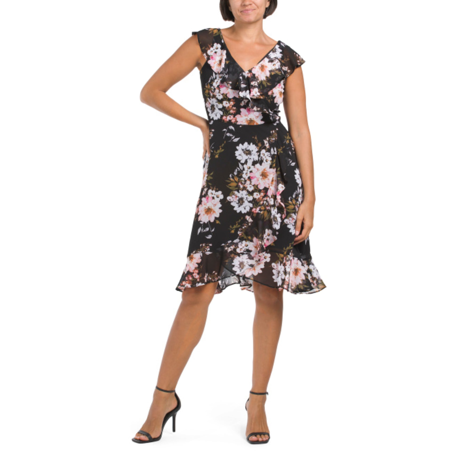 London Times Women's Floral Print Ruffle Trim Wrap Mini Dress