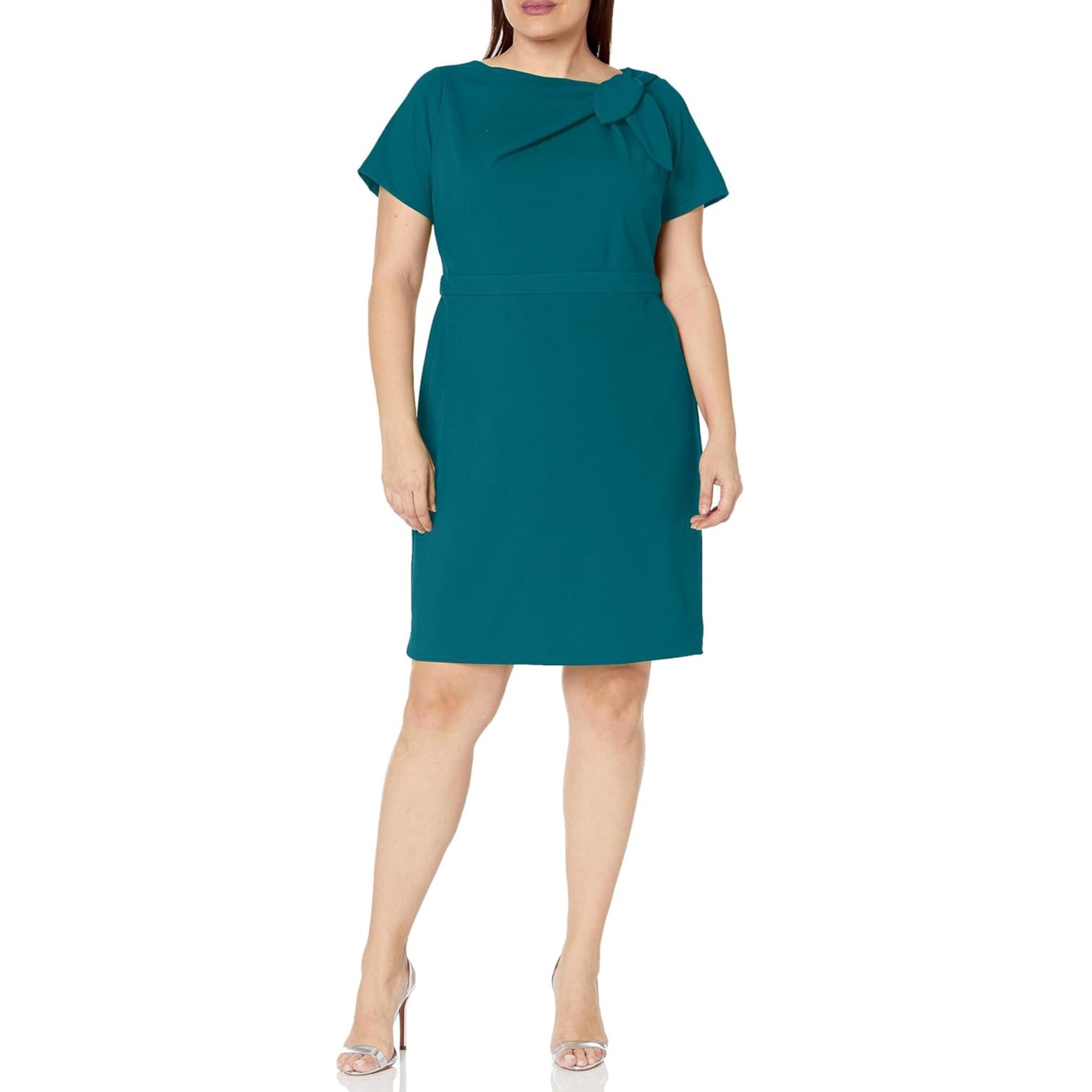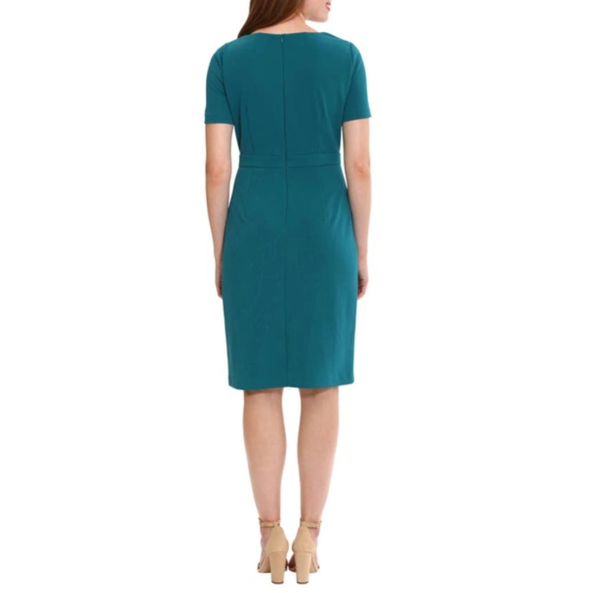 London Times Women's Short Sleeve Gathered Neck Tie Sheath Mini Dress