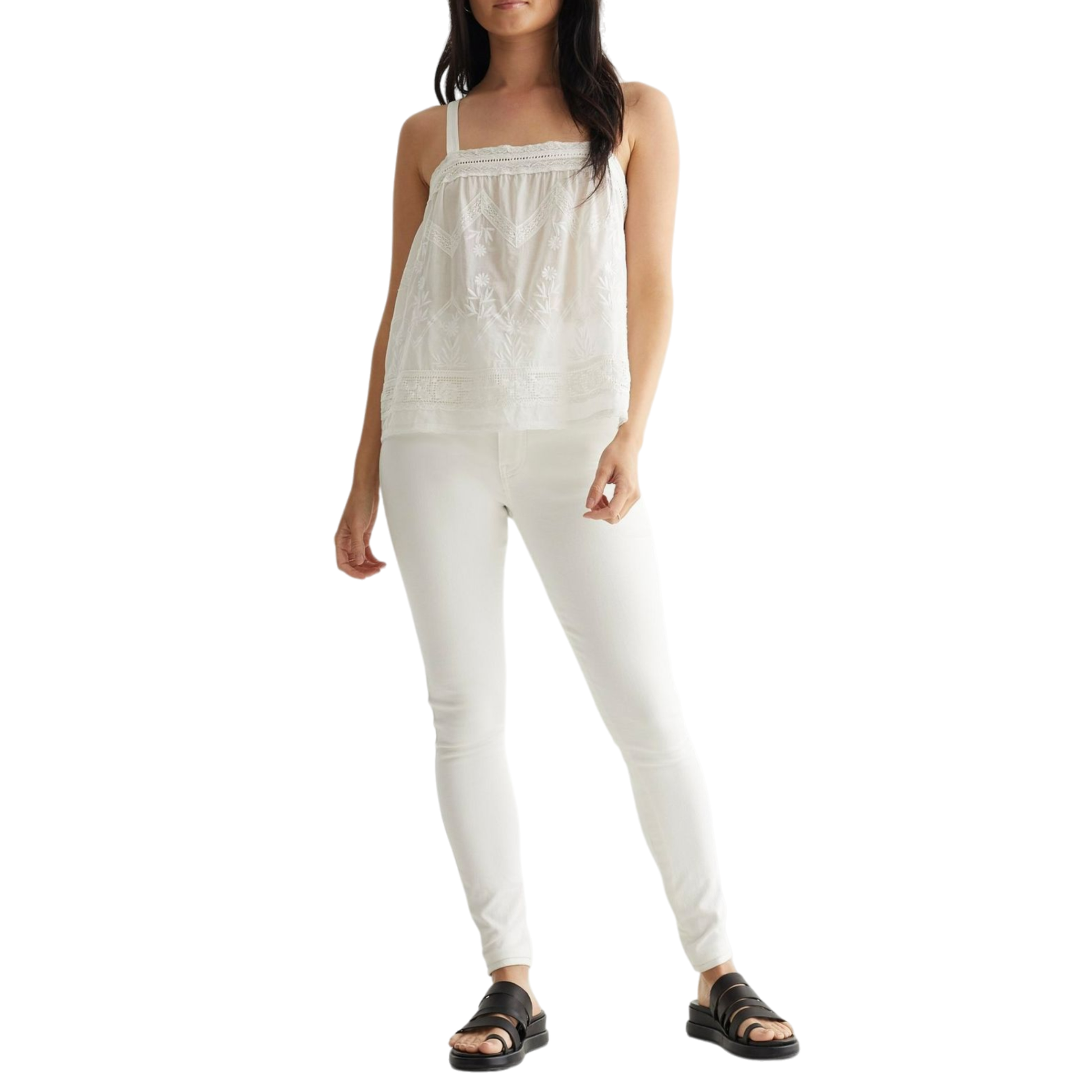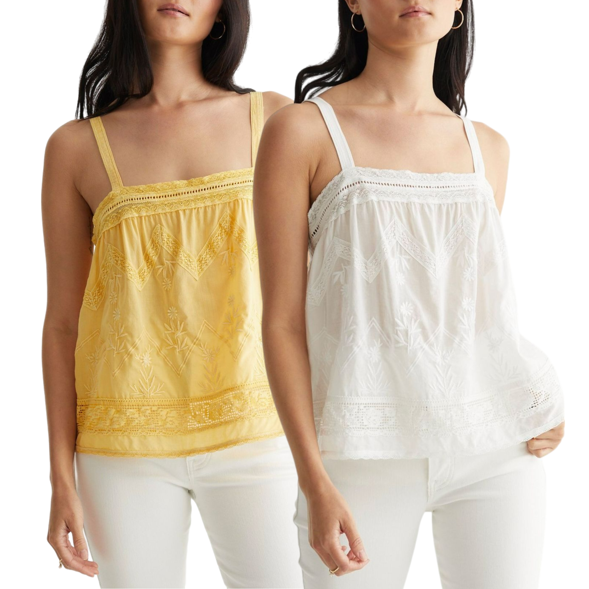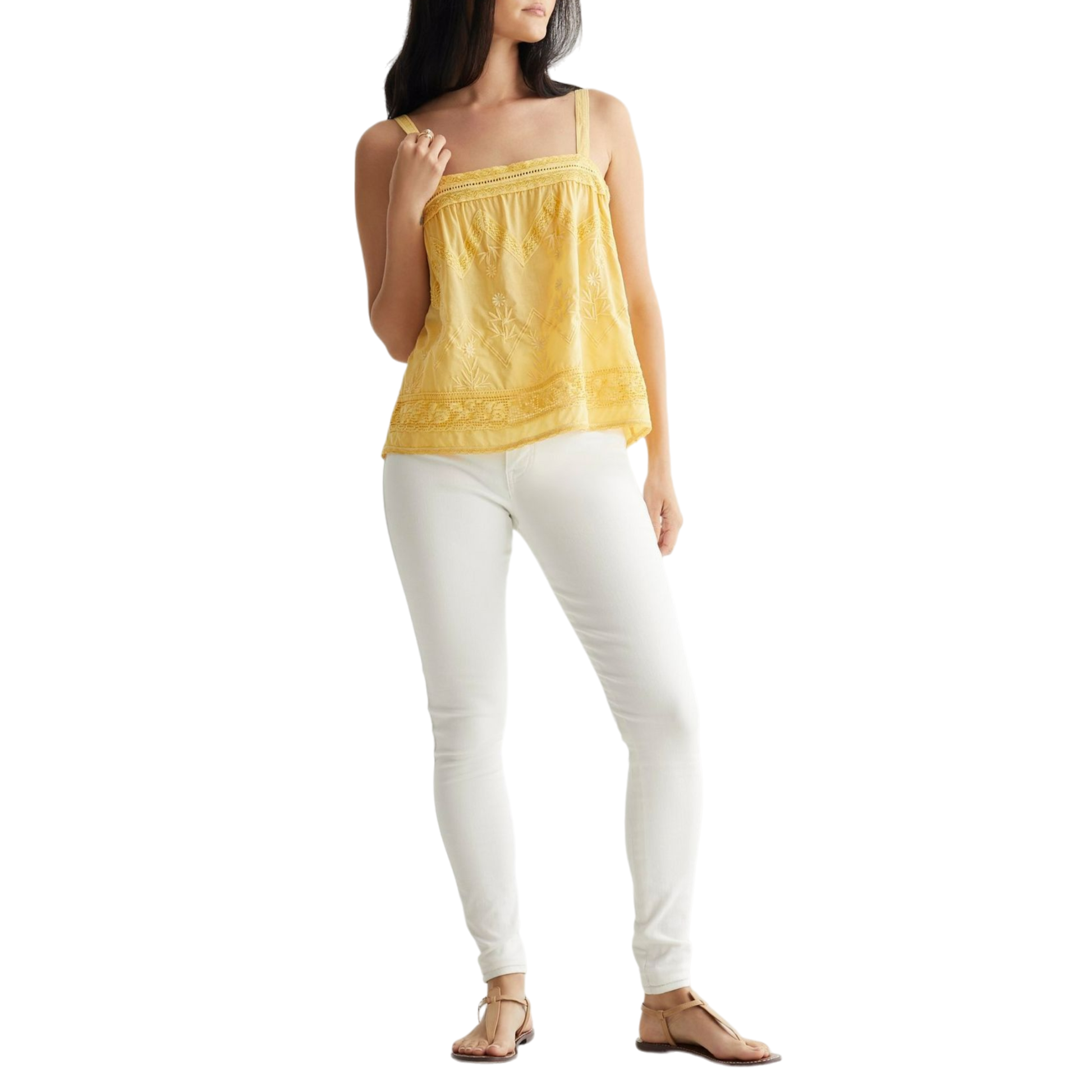 Get ready to turn heads in the Lucky Brand Embroidery Camisole! With embroidery and delicate lace details, this top adds a touch of playful elegance to any outfit. Made from soft cotton, it's as comfortable as it is stylish. Elevate your wardrobe with this must-have summer piece.