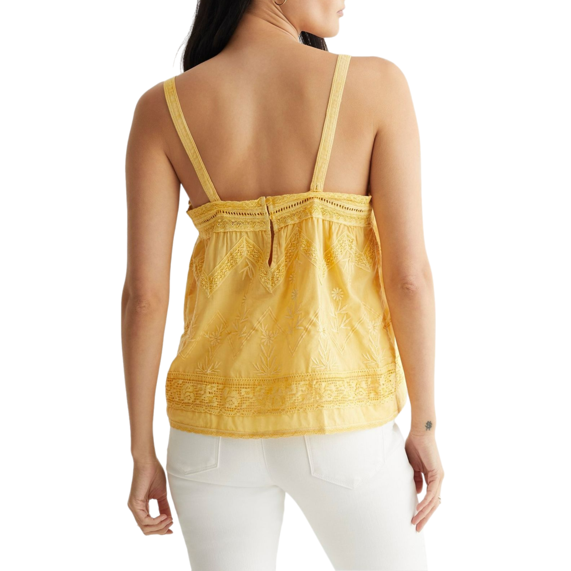 Lucky Brand Women's Embroidery Lace Trim Cotton Camisole Top