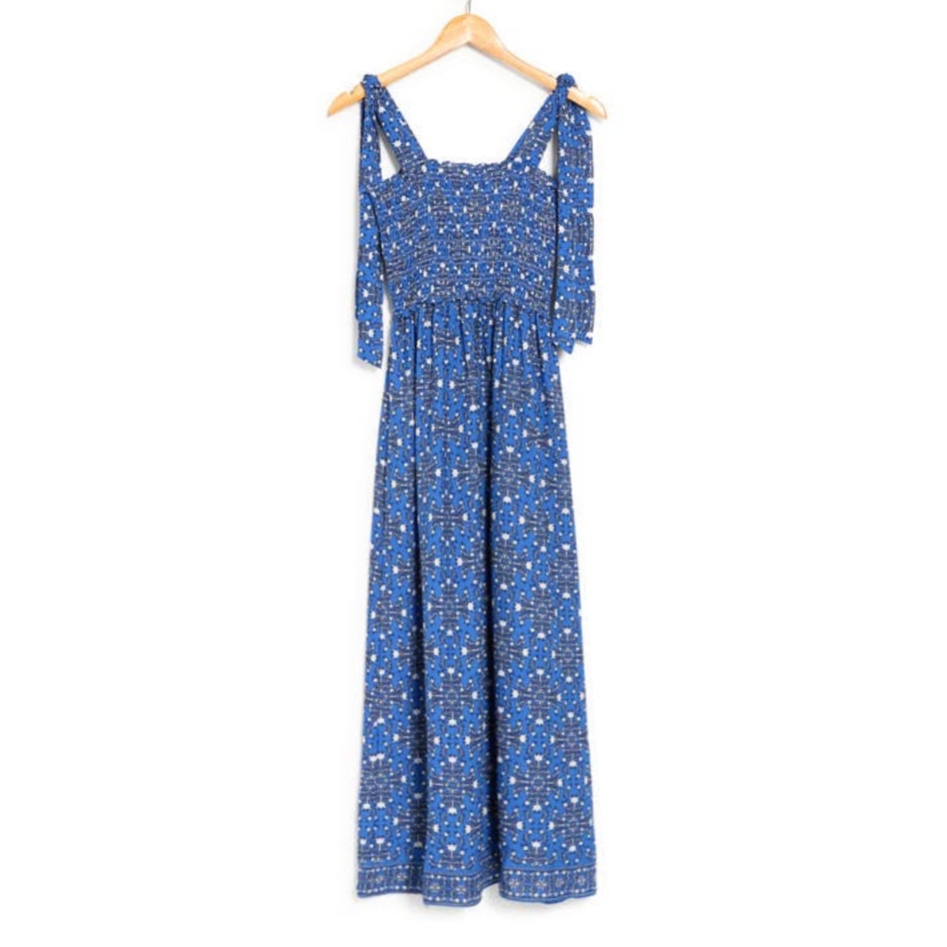 Max Studio Women's Tie Strap Smocked Bodice Floral Print Maxi Dress