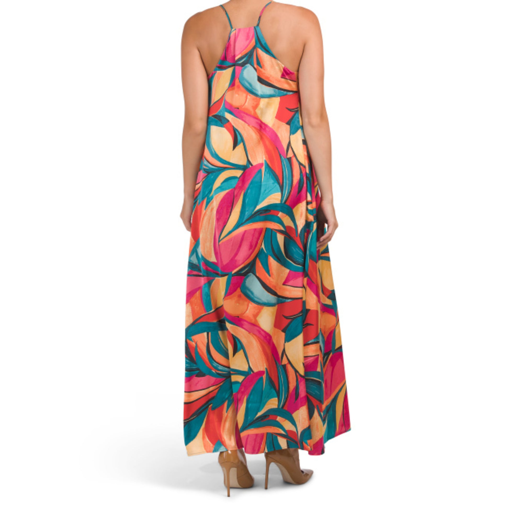 Experience breathtaking blooms in the Nicole Miller Maxi Dress! Its abstract floral print and luxuriously soft satin material give majestic vibes. The slip-on design offers a comfortable fit and the maxi length adds a touch of elegance. Perfect for any occasion, this dress will make you look stunning.