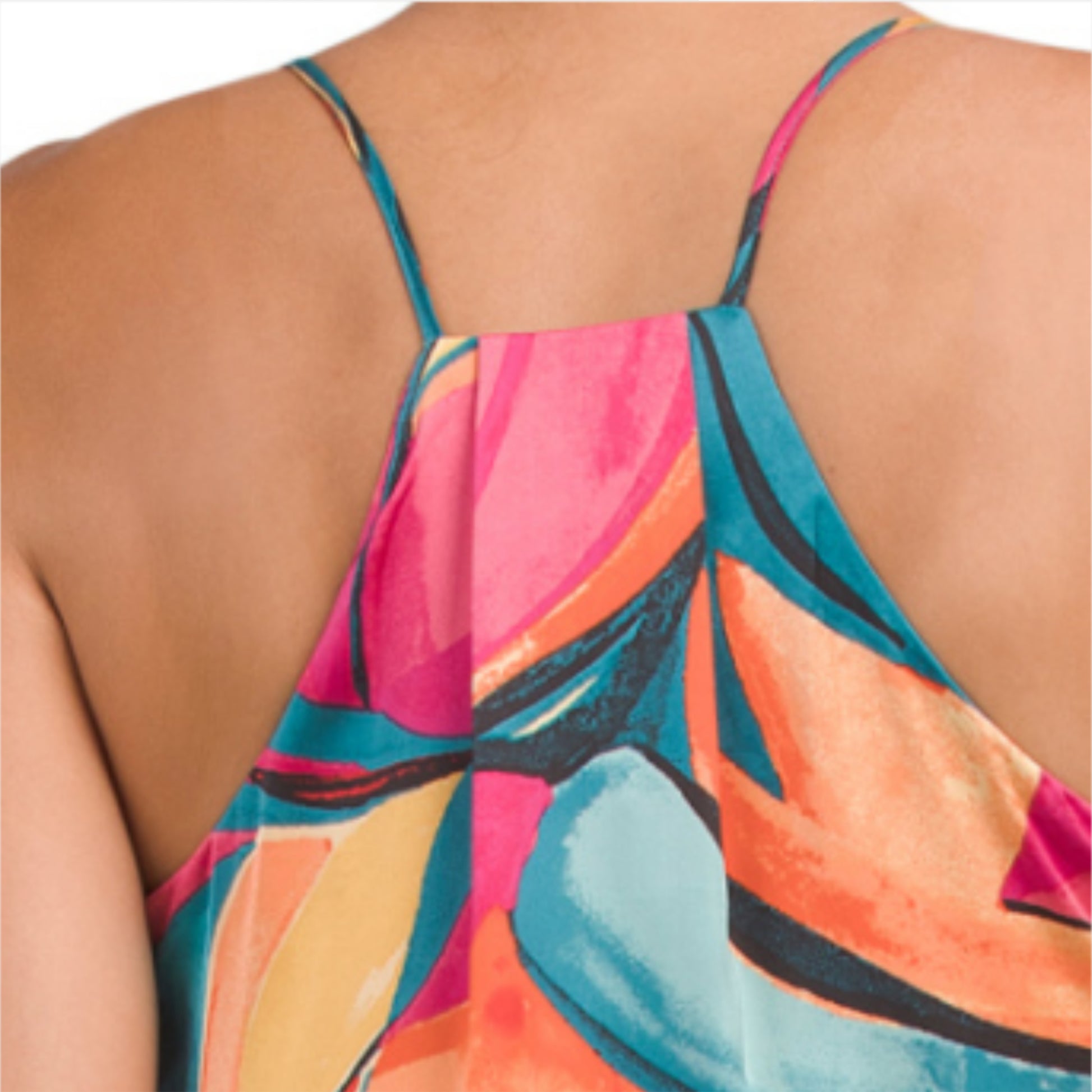 Nicole Miller Abstract Floral Print Slip on Satin Maxi Dress