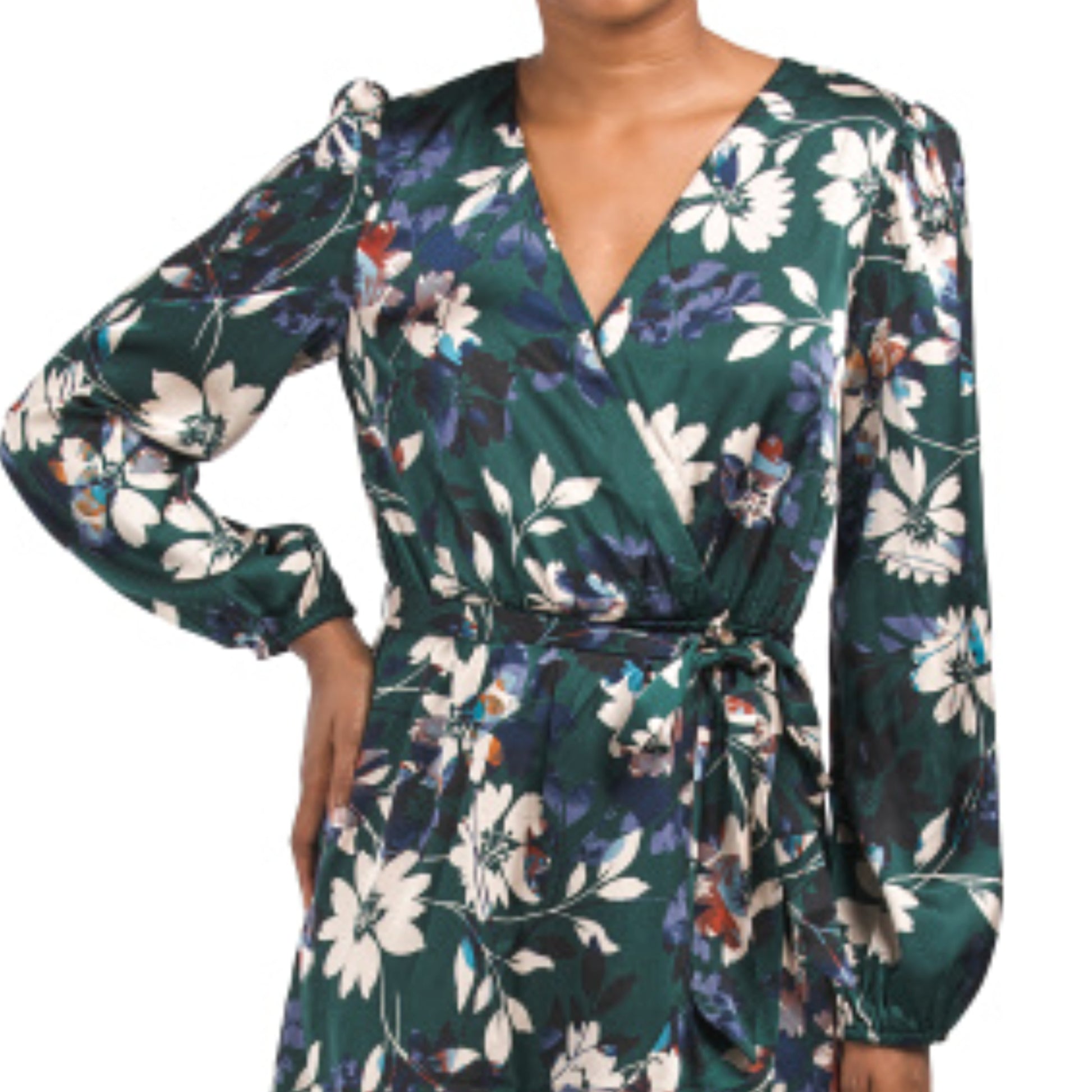 NICOLE MILLER NY Women's Long Sleeve Floral Satin Wrap Style Mini Dress