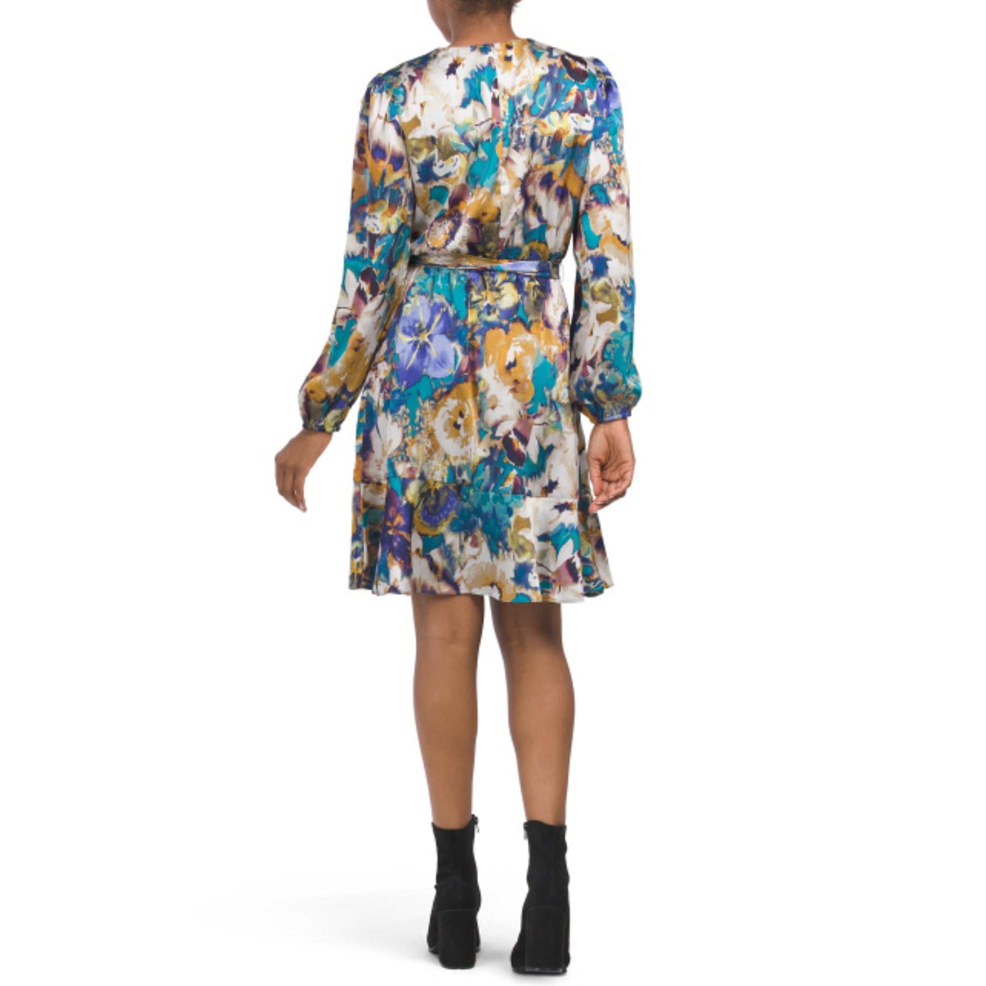Unleash your playful and fun side with the NICOLE MILLER NY Floral Mini Dress. The dress features a flattering wrap style, soft and luxurious satin fabric, and elegant long sleeves. Perfect for special occasions, it effortlessly combines comfort and style for a stunning look.
