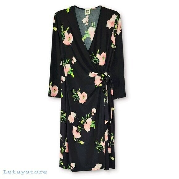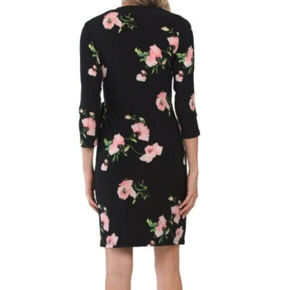 Anne Klein Floral Print V-Neck Wrap Mini Dress