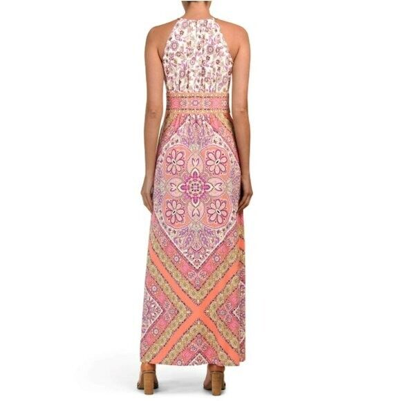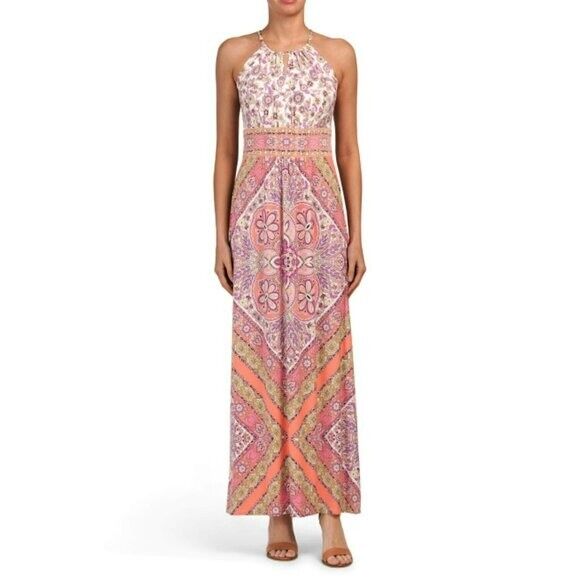 Effortlessly transition from day to night in style with the London Times Halter Maxi Dress. Featuring a flattering halter neckline and printed design, this dress is both elegant and comfortable. Perfect for any occasion, it's a must-have for your wardrobe.