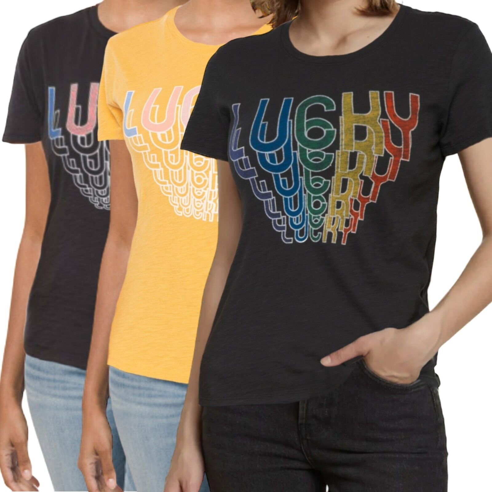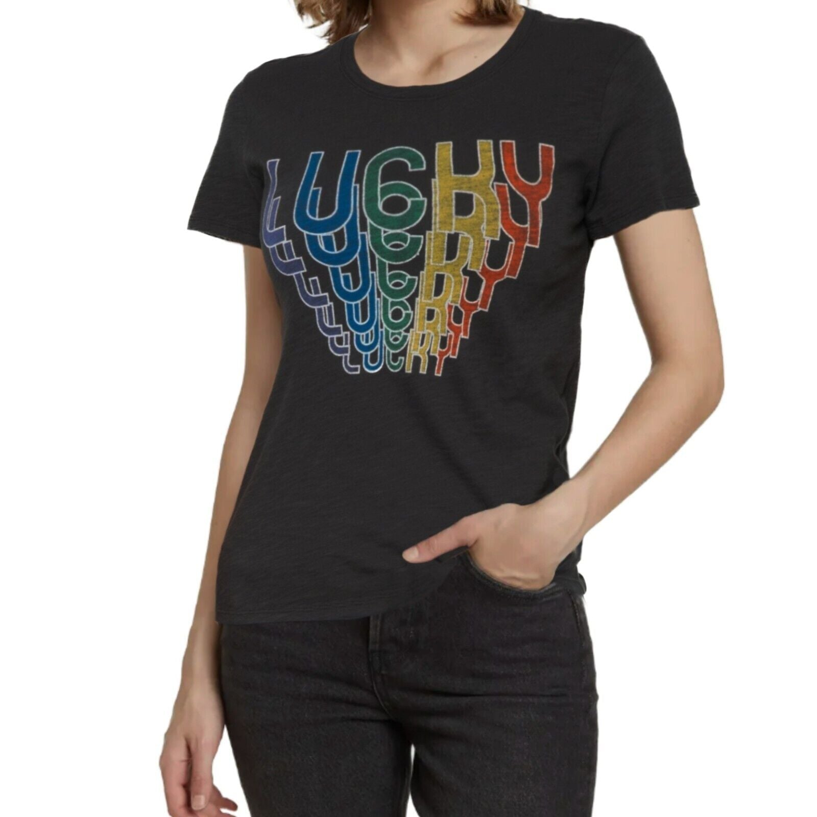 Lucky Brand Women's Cascading Lucky Graphic Print Soft Cotton T-Shirt Top