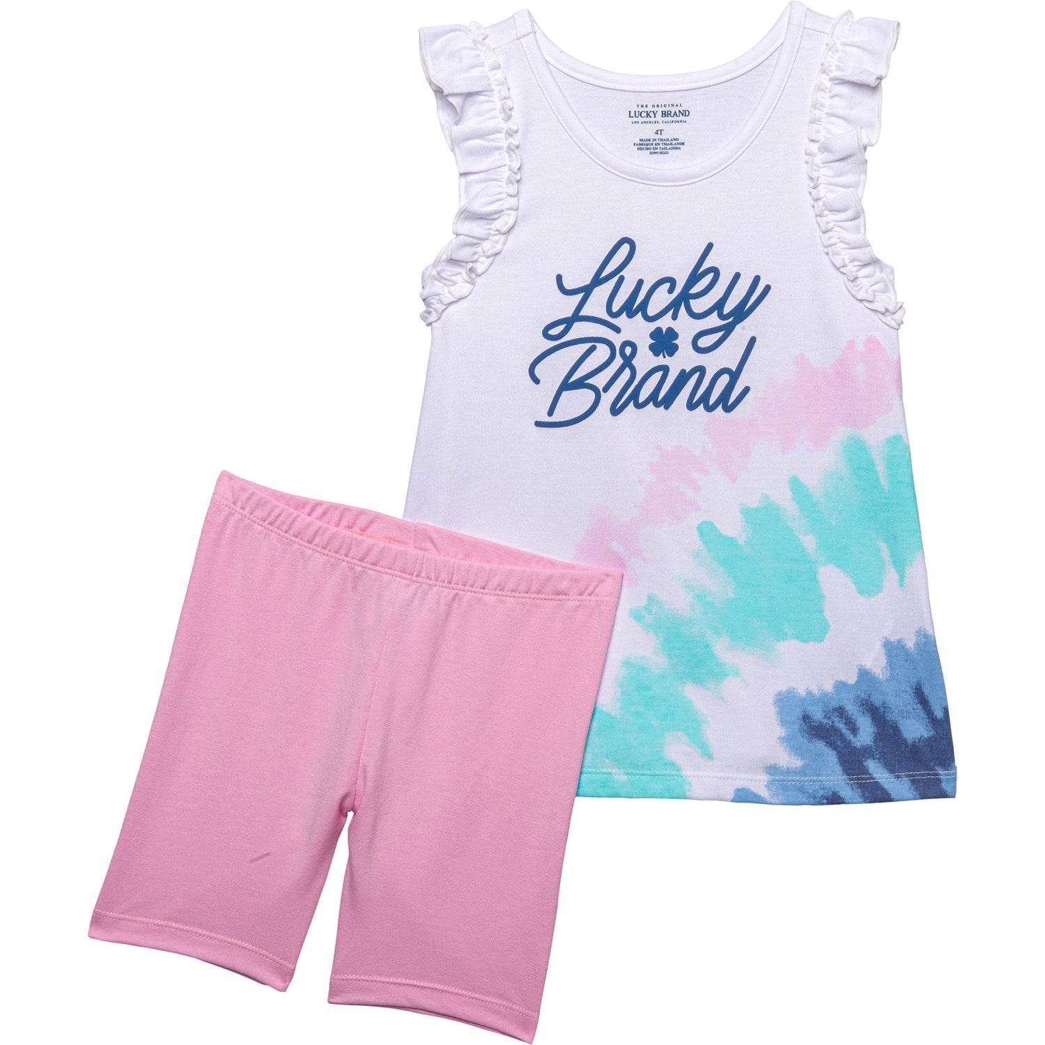 She'll be ready to take on summer with Lucky Brand's Tie-Dye tank top and bike shorts set, made from soft, breathable fabric with cute, feminine style.